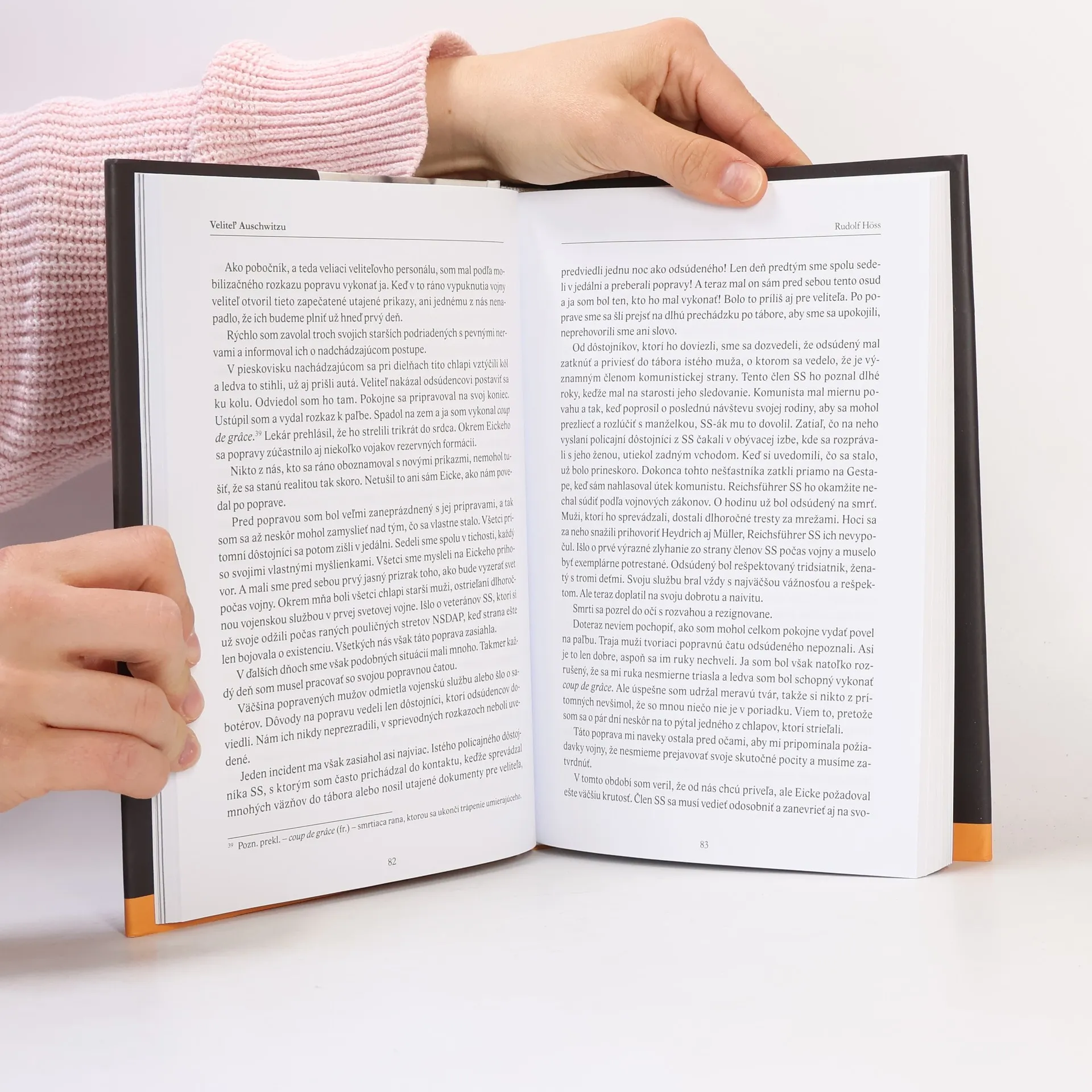 Táto publikácia. .. je plná zla. Nemá žiadnu literárnu hodnotu a samotné jej čítanie je utrpením, vraví Primo Levi vo svojom úvode. Höss sa snaží obhajovať, javí sa takým, akým naozaj je: nechutný, hlúpy, arogantný, nudne a donekonečna tárajúci podliak. Napriek tomu táto kniha patrí medzi tie najpoučnejšie, aké boli kedy publikované. Rudolf Höss bol počas vojny veliteľom tábora Auschwitz. Briti, ktorí ho zatkli, mu prikázali spísať svoju autobiografi u v čase niekoľkých týždňov, keď čakal po vynesení rozsudku na svoju popravu. Túto autobiografi u máte v rukách. Ide o neuveriteľný a jedinečný dokument; Höss velil obrovskému exterminačnému stredisku na území Poľska, kde nacisti vyvraždili niekoľko miliónov Židov od samotného vzniku (Höss mal na starosti výstavbu tábora) v roku 1940 až do konca roka 1943, keď už bola masová likvidácia spolovice naplnená. Predtým pracoval v iných táboroch a neskôr na inšpektoráte v Berlíne. Vedel tak viac než takmer ktokoľvek iný aj vďaka svojim osobným skúsenostiam či skúsenostiam spoza stola ako úradník o najväčšom zločine nacistického Nemecka. Bol zatknutý Britmi, vydaný Poliakom, trestne stíhaný, odsúdený na smrť, prevezený do Auschwitzu a tu popravený.