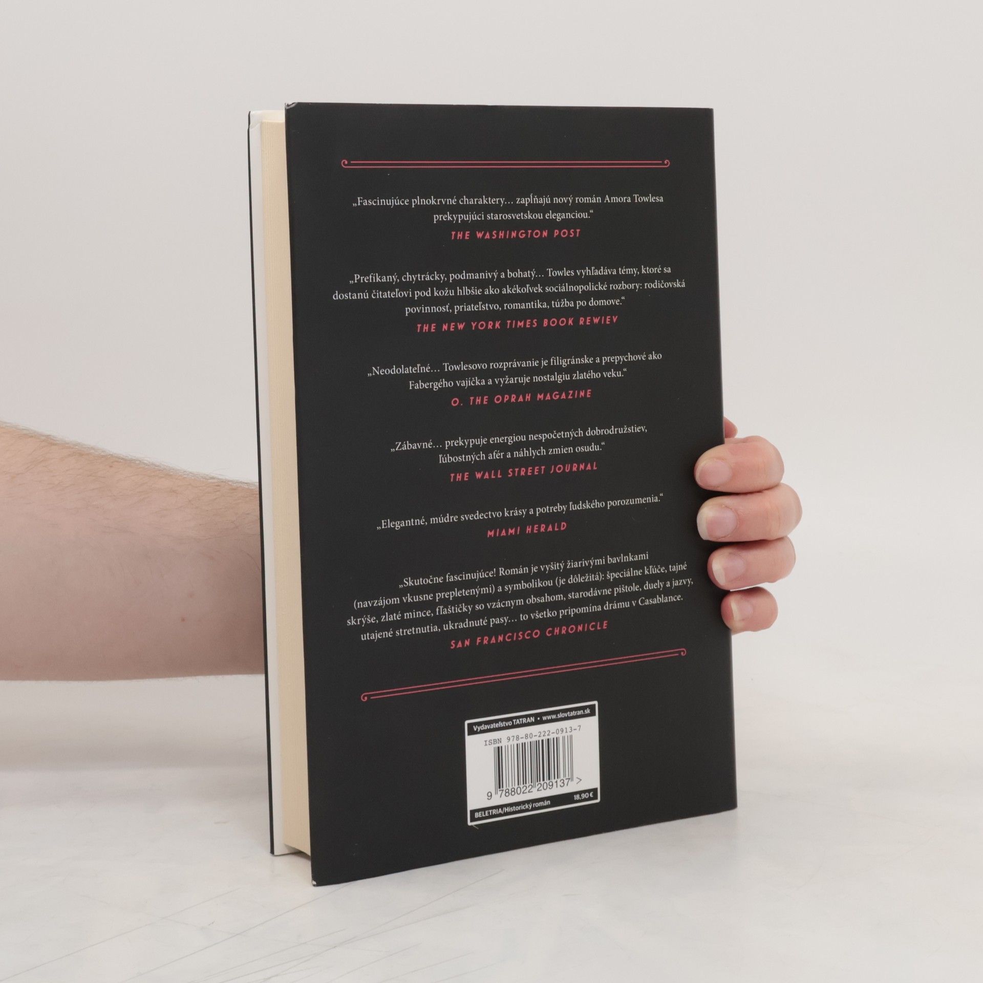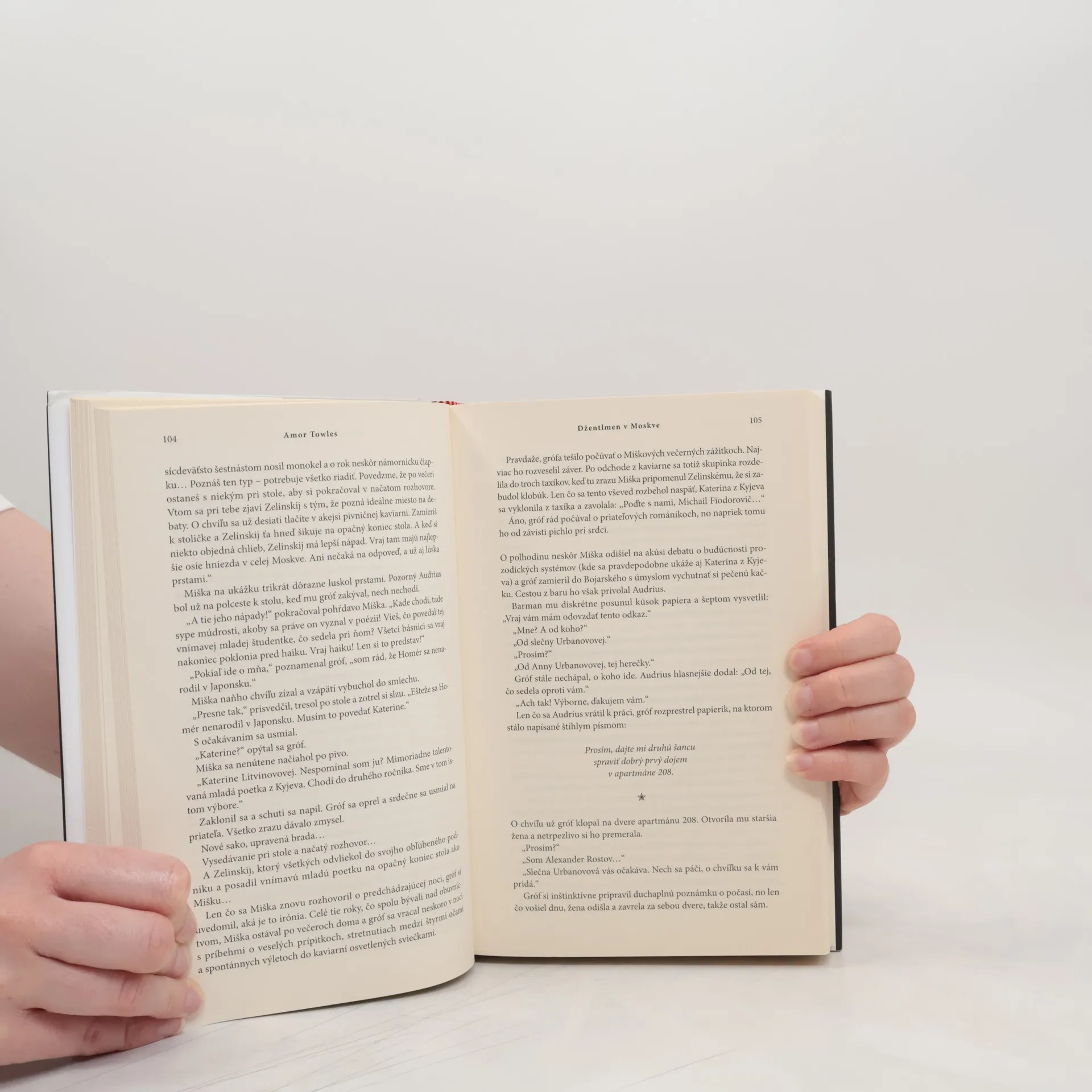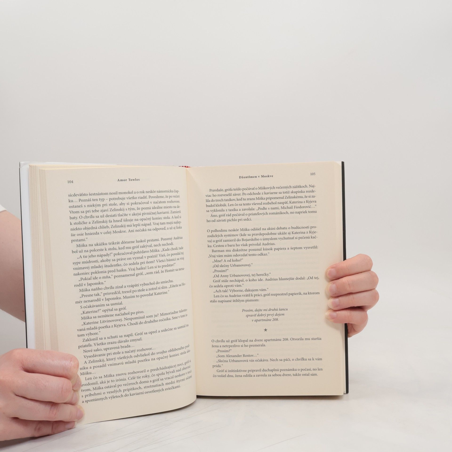 On odísť nesmie, vy nechcete. V roku 1922 vyhlásia boľševici tridsaťdvaročného grófa za zarytého aristokrata a odsúdia ho na domáce väzenie v hoteli Metropol neďaleko Kremľa. Nezlomný gróf prekypujúci vtipom a vzdelaním sa presťahuje do podkrovnej izby, odkiaľ sleduje jedno z najbúrlivejších desaťročí ruských dejín. Grófove obmedzené priestory ho však zavedú do obrovského netušeného sveta emocionálnych objavov. Spriatelí sa s mnohými obyvateľmi hotela vrátane tvrdohlavej herečky, prešibaného straníckeho funkcionára, spoločenského Američana a náladového šéfkuchára. Keď mu však osud vloží do rúk život mladej dievčiny, musí použiť všetok dôvtip, aby jej zabezpečil budúcnosť, akú si zaslúži. Tento jedinečný román plný humoru, skvelých postáv a nádherných obrazov čarovne opisuje grófovu snahu pochopiť pravú podstatu cieľavedomého života. Towles je neskutočný rozprávač, majster slova. Džentlmen v Moskve je elegantné a múdre svedectvo krásy a potreby ľudského porozumenia v ťaživej životnej skúške.