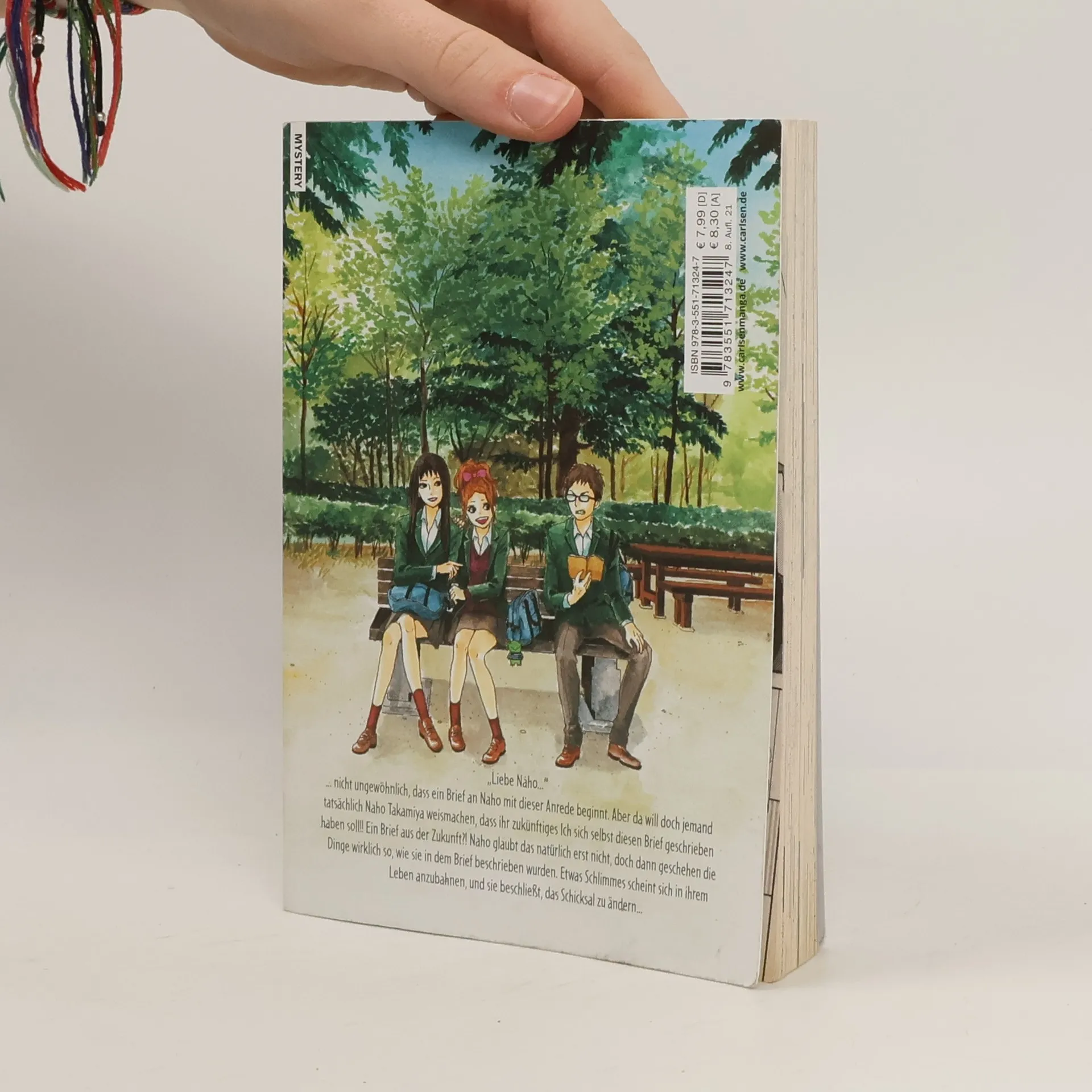 Briefe in die Vergangenheit... „Liebe Naho...“ ... nicht ungewöhnlich, dass ein Brief an Naho mit dieser Anrede beginnt. Aber da will doch jemand tatsächlich Naho Takamiya weismachen, dass ihr zukünftiges Ich sich selbst diesen Brief geschrieben haben soll!! Ein Brief aus der Zukunft?! Naho glaubt das natürlich erst nicht, doch dann geschehen die Dinge wirklich so, wie sie in dem Brief beschrieben wurden. Etwas Schlimmes scheint sich in ihrem Leben heranzubahnen, und sie beschließt, das Schicksal zu ändern... Mit Gratis-Postkarte als Beilage, nur in der 1. Auflage! Eine berührende Coming-of-Age Story über gegenseitige Fürsorge und Achtsamkeit, die ihre Leser*innen direkt ins Herz trifft! Weitere Informationen: - Für Manga-Fans und -Neulinge ab 14 Jahren - Auch bekannt aus dem beliebten Anime auf Crunchyroll - Abgeschlossen in sieben Bänden