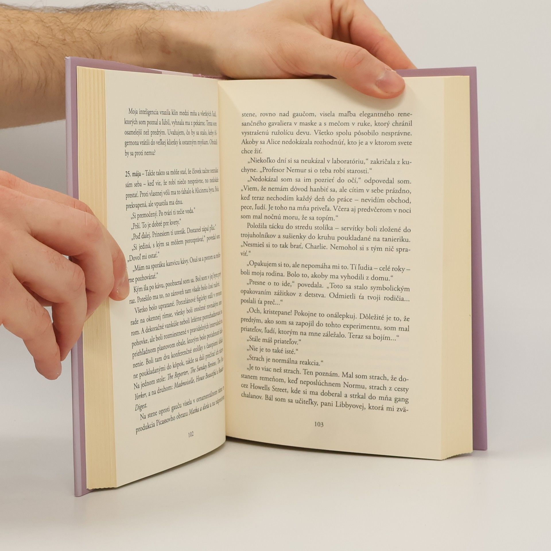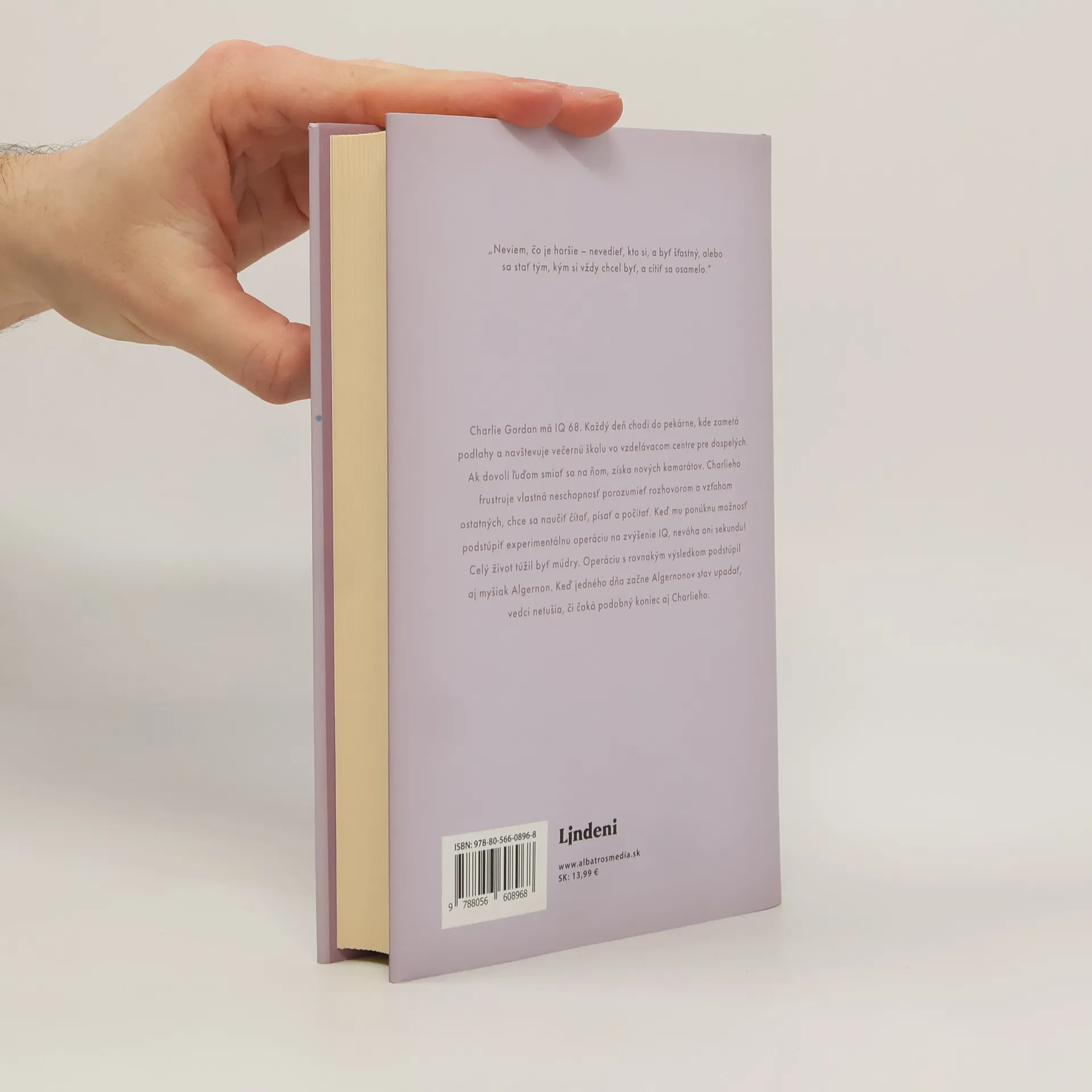 „Bojím sa. Nie života či smrti, ani ničoty, ale toho, že svoj čas premárnim, akoby som nikdy nebol.“ Charlie Gordon má IQ 68. Každý deň chodí do pekárne, kde zametá podlahy a navštevuje večernú školu vo vzdelávacom centre pre dospelých. Ak dovolí ľuďom smiať sa na ňom, získa nových kamarátov. Charlieho frustruje vlastná neschopnosť porozumieť rozhovorom a vzťahom ostatných, chce sa naučiť čítať, písať a počítať. Keď mu ponúknu možnosť podstúpiť experimentálnu operáciu na zvýšenie IQ, neváha ani sekundu! Celý život túžil bytť múdry. Rovnakú operáciu s rovnakým výsledkom podstúpil aj myšiak Algernon. Keď jedného dňa začne Algernonov stav upadať, vedci netušia, či čaká podobný koniec aj Charlieho. Kultový román druhej polovice 20. storočia, ktorý dnes právom považujeme za klasiku americkej literatúry.