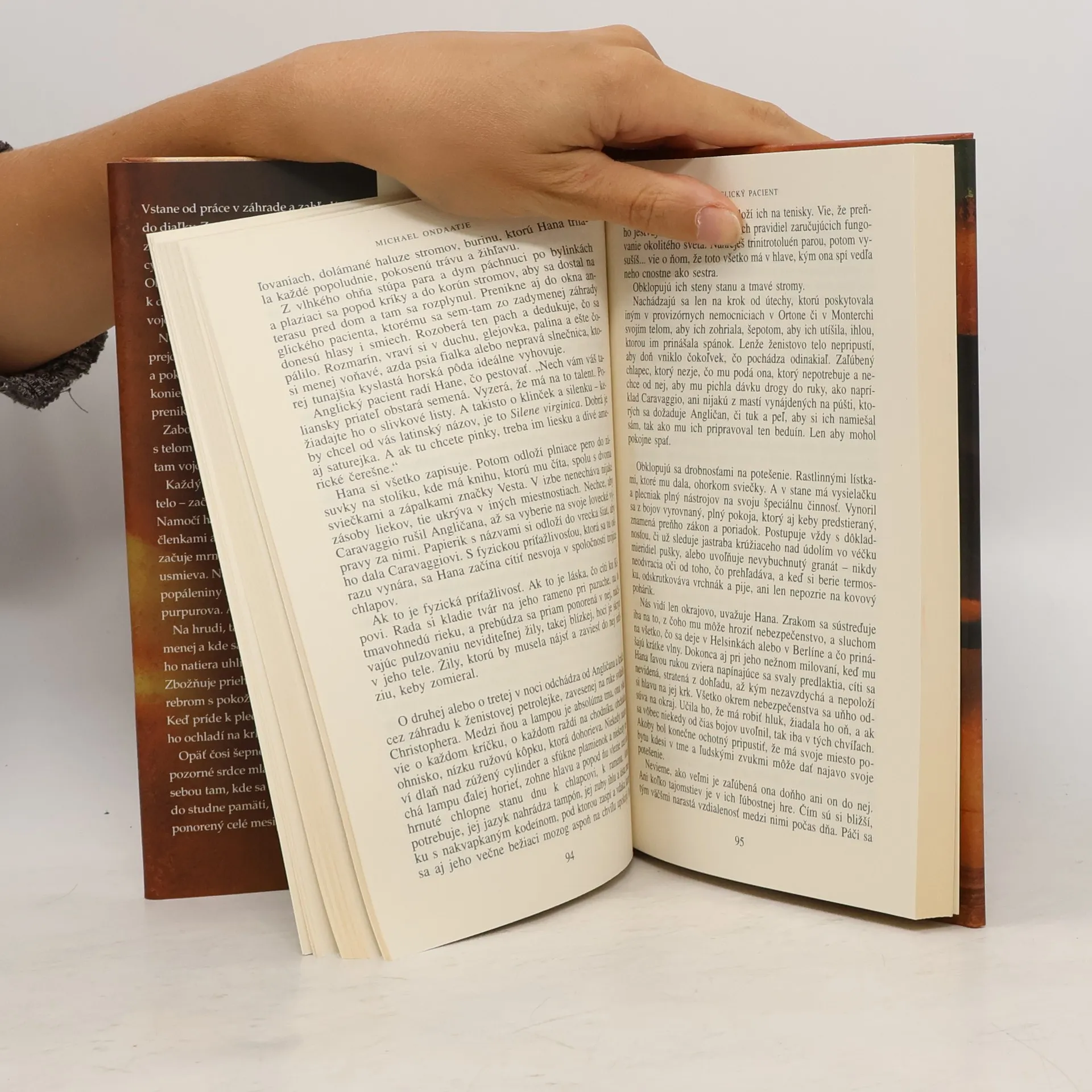 Kto je zranený vojak v opustenej vile v Toskánsku? Svoje meno si nepamätá a hovorí, že je Angličan. Jeho ošetrovateľka Hana je unavená smrťou, a preto až priveľmi lipne na mužovi, ktorého sa usiluje zachrániť. Osud oboch sa nečakane zmení, keď sa v dome zjaví zlodej Caravaggio a indický ženista Kip. Caravaggio a Hana postupne odhaľujú pravú totožnosť anglického pacienta – bezmenného a zmrzačeného muža, ktorého spomienky na lásku, zradu a utrpenie osvetľujú jeho príbeh ako plamienky zhasínajúceho ohňa. Román Anglický pacient je najznámejšie dielo M. Ondaatjeho, za ktoré dostal prestížnu Bookerovu cenu a na jeho motívy vznikol rovnomenný film, ocenený Oscarom za najlepší film roka 1997.