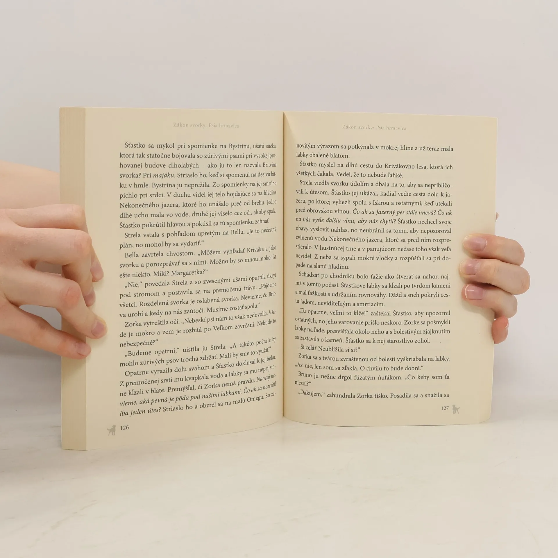 Divá svorka získala nového vodcu a psi možno konečne nájdu vytúžený domov, kde by mohli žiť v pokoji. Zimné dni sa však skracujú a svorka sa musí mať na pozore pred Britvou a jej zúrivými psami, ktorí sa nezastavia, kým nezničia Šťastkových priateľov. Ten vie, že Strela bude múdra a nebojácna Alfa, no v snoch ho mátajú vidiny desivej budúcnosti. Bojí sa dňa, keď budú musieť všetci psi navzájom bojovať na život a na smrť. Psia hrmavica sa blíži…