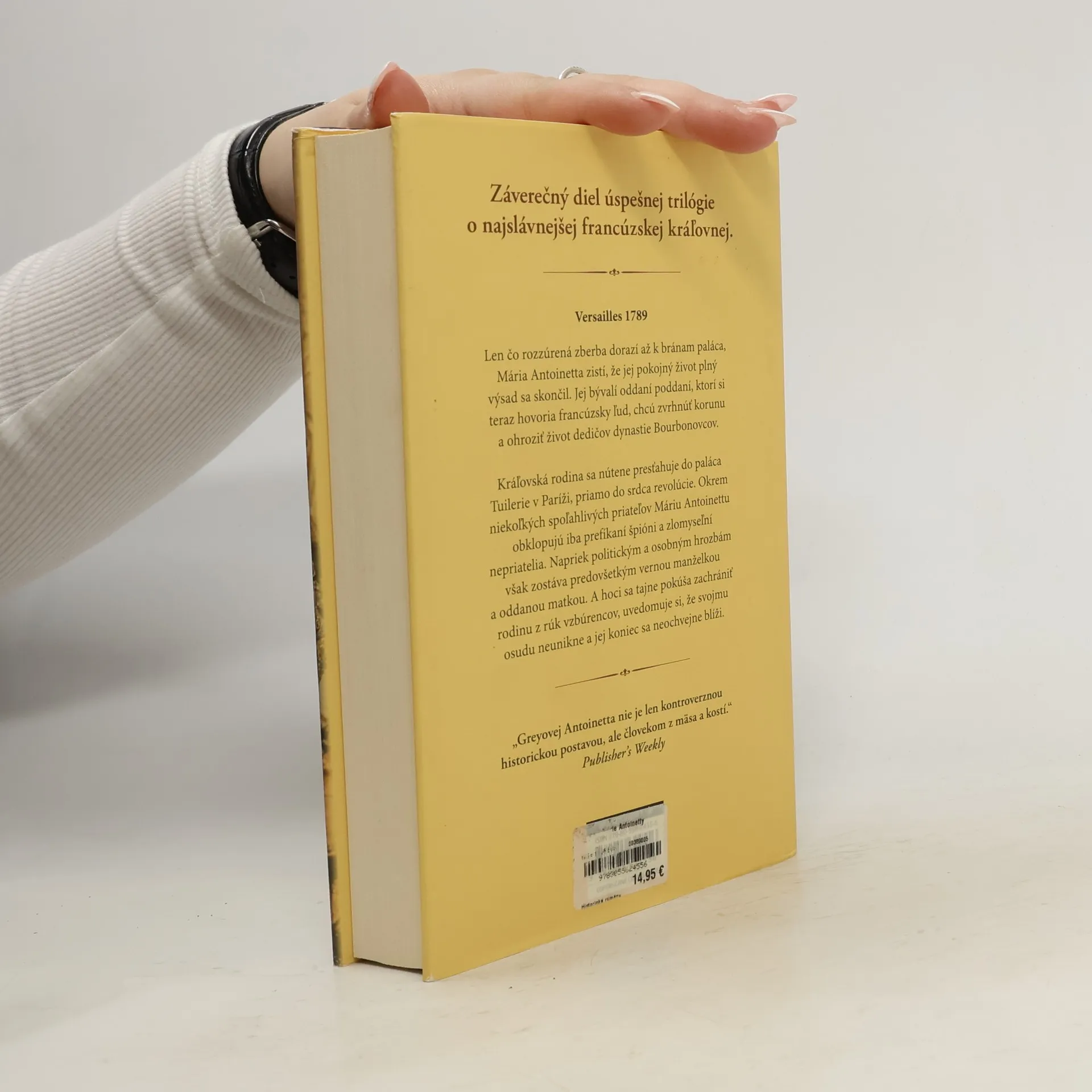 Versailles 1789. Len čo prepukajúca vzbura dorazí až k bránam paláca, Mária Antoinetta zistí, že pokojný život plný výsad sa skončil. Jej bývalí oddaní poddaní si zrazu hovoria francúzsky ľud, a usilujú sa zvrhnúť monarchiu a ohroziť životy dynastie Bourbonovcov. Kráľovská rodina sa musí presťahovať do paláca Tuilerie a ocitne sa priamo v srdci revolúcie. Máriu Antoinettu okrem niekoľkých spoľahlivých priateľov obklopujú už iba prefíkaní špióni a zlomyseľní neprajníci. Kráľovná napriek politickým a osobným hrozbám zostáva najmä vernou manželkou a oddanou matkou, hoci si uvedomuje, že tragickému osudu neunikne. Koho môže kniha zaujať: Každého, kto si rád prečíta príbeh inšpirovaný historickými udalosťami a osobnosťami.