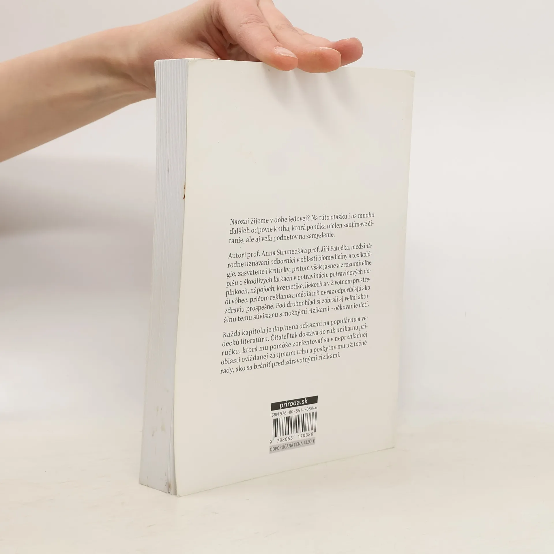 Naozaj žijeme v dobe jedovej? Na túto otázku i mnoho ďalších vám odpovie kniha, ktorá vám ponúka nielen zaujímavé čítanie, ale aj veľa podnetov na zamyslenie. Autori prof. Anna Strunecká a prof. Jiří Patočka, medzinárodne uznávaní odborníci v oblasti biomedicíny a toxikológie, zasvätene i kriticky, pritom však jasne a zrozumiteľne píšu o škodlivých látkach v potravinách, potravinových doplnkoch, nápojoch, kozmetike, liekoch a v životnom prostredí vôbec, pričom reklama a médiá ich neraz odporúčajú ako zdraviu prospešné. Pod drobnohľad si zobrali aj veľmi aktuálnu tému súvisiacu s možnými rizikami – očkovanie detí.Každá kapitola je doplnená odkazmi na populárnu a vedeckú literatúru. Čitateľ tak dostáva do rúk unikátnu príručku, ktorá mu pomôže zorientovať sa v neprehľadnej oblasti ovládanej záujmami trhu a poskytne mu užitočné rady, ako sa brániť pred zdravotnými rizikami.Z českého originálu Doba jedová (vydavateľstvo Triton, Praha 2011) preložila PhDr. Zora Špačková