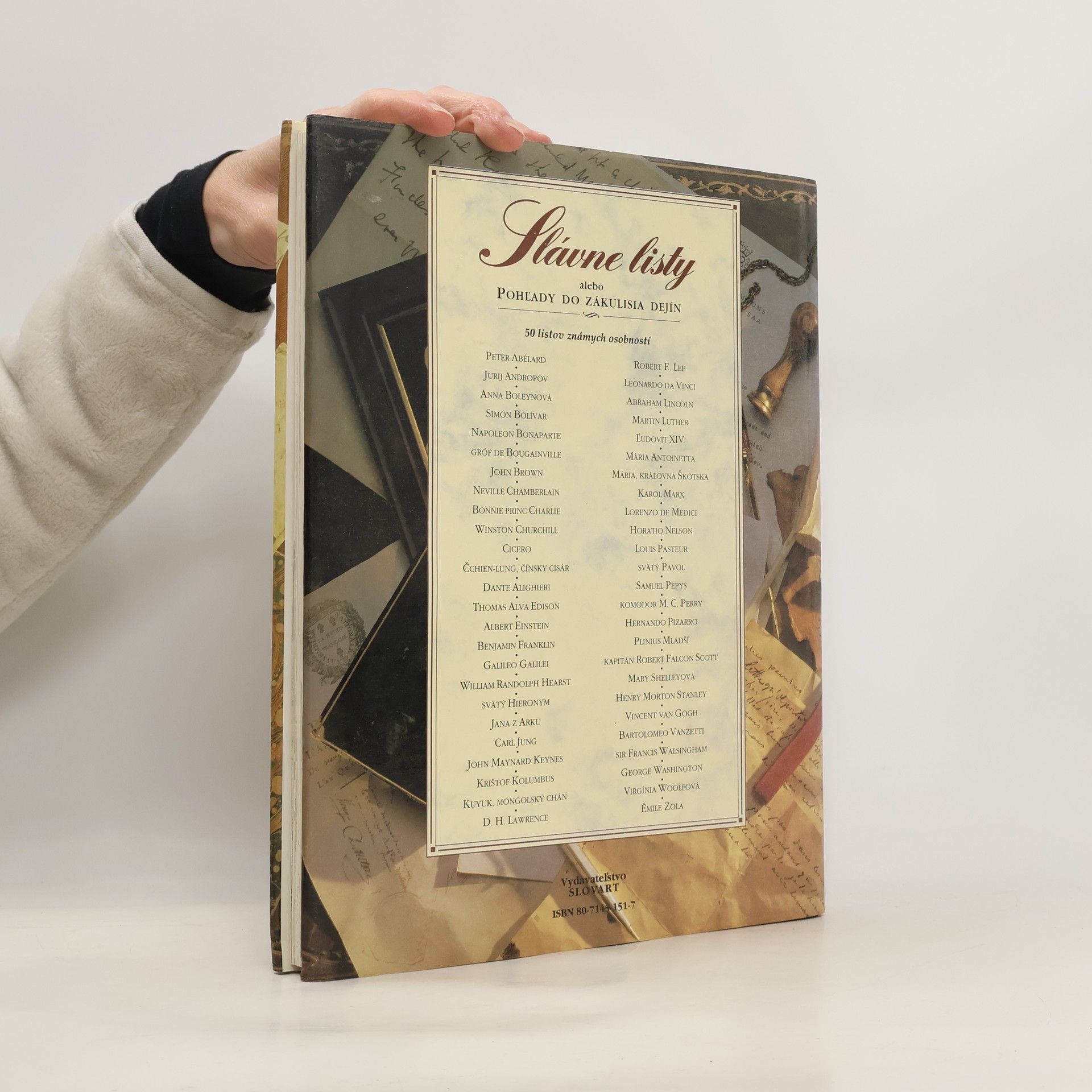 Pohľady do zákulisia dejín-50 listov známych osobností. Obsahuje stretnutia a objavy, ako napríklad Svätého Hieronyma so Eustochiom, mongolského chána Kuyuka s pápežom Inocentom IV., Krištofa Kolumba s Luisom de Santangelom, Hernanda Pizarra s členmi Kráľovskej rady v Santo Domingu, Galilea Galileiho s Belisariom Vintaom, a ďalších významných osobností ako Benjamin Franklin, Louis Pasteur či Albert Einstein. V sekcii autoportréty a obhajoby sú zastúpení Dante, Leonardo da Vinci, Martin Luther, Anna Boleynová, George Washington, Thomas Alva Edison a ďalší, ktorí sa obracajú na blízkych a autority. Politika a výzvy sú reprezentované listami Svätého Pavla, Plinia mladšieho, Jany z Arcu, Ľudovíta XIV., Napoleona Bonaparteho, Karola Marxa a Winstona Churchilla, ktorí sa vyjadrujú k dôležitým historickým momentom. Témy lásky, smrti a priateľstva sú prítomné v listoch Cicera, Abélarda, Márii, kráľovnej škótskej, Horatia Nelsona, Mary Shelleyovej, Abrahama Lincolna a Vincenta Van Gogha, pričom každý z nich ponúka unikátne pohľady na osobné a emocionálne aspekty svojich životov.