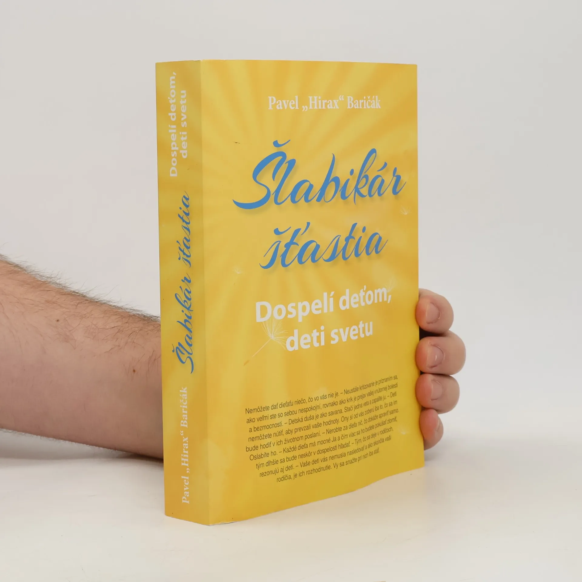 Tretí diel Šlabikára šťastia nie je určený iba pre rodičov, ktorí hľadajú spôsob, akou formou dať svojim potomkom to najlepšie, ale aj pre duše, ktoré chcú pochopiť, prečo sú v nich strachy, konajú ako konajú, či sa im v niečom nedarí. Kľúč k bôľom dneška sa totiž nachádza v detstve, v spôsobe, ako k nám bolo pristupované, čo sme videli, cítili a zažili od momentu splodenia až po dospievanie.