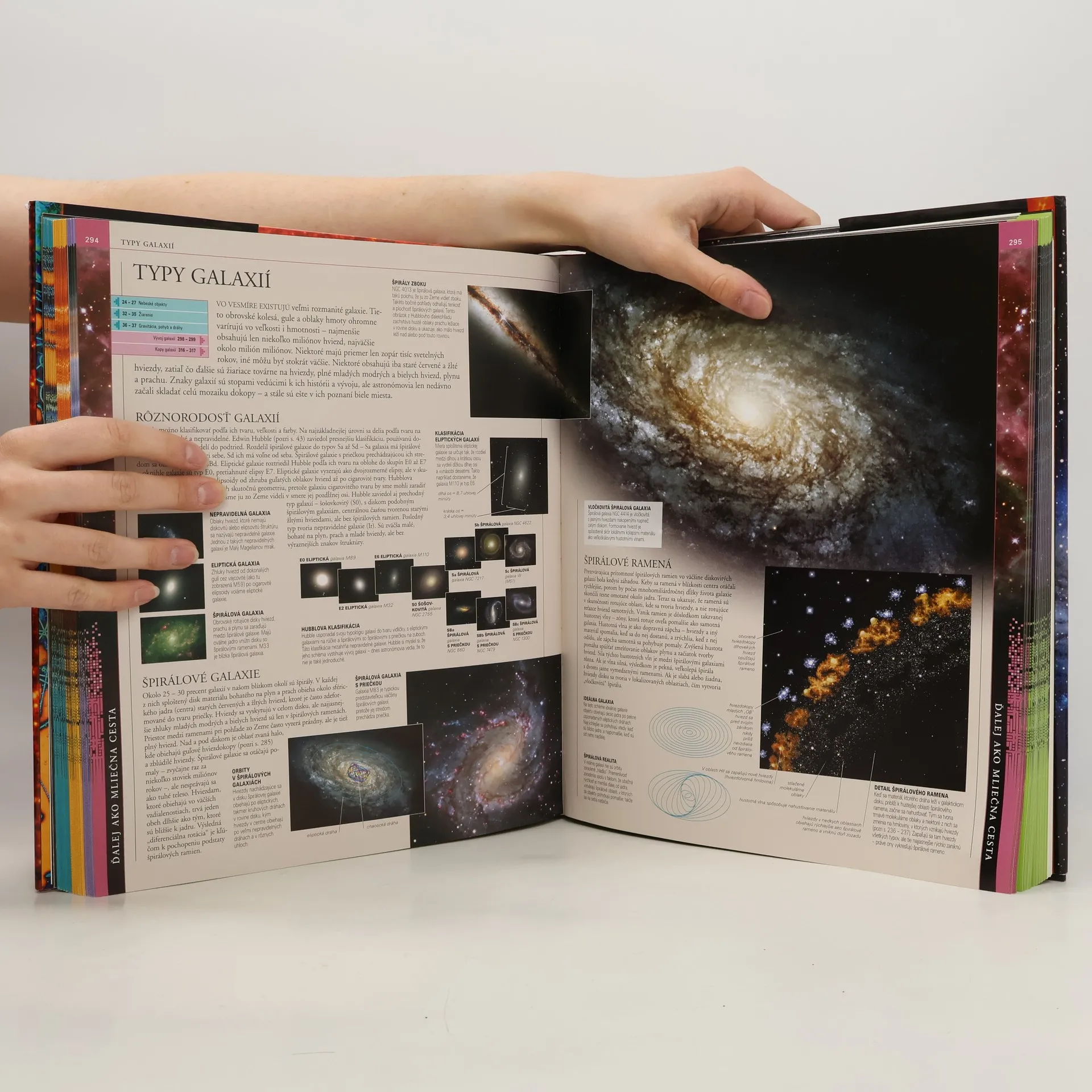 Táto encyklopédia odkrýva vesmír so všetkými jeho fenoménmi vzbudzujúcimi posvätnú úctu, počnúc stredom slnečnej sústavy až po krajné medze známeho kozmu. Kým iné knihy opisujú rôzne aspekty vesmíru, táto vám všetko ukáže – zoberie vás na oslnivý vizuálny prieskum všemožných úžasných objektov a javov. VÁŠ ODBORNÝ SPRIEVODCA Kniha Vesmír vysvetľuje sily a procesy, ktoré udržiavajú kozmos v chode. Zaoberá sa základnými otázkami typu: ako a kedy vznikol vesmír, objasňuje pojmy čas a priestor a snaží sa preniknúť do tajov budúcnosti. VEĽKÁ CESTA Vydajte sa na dobrodružnú výpravu po kamenných vnútorných planétach slnečnej sústavy i po vzdialených plynných obroch a objavujte zvyšok našej domovskej galaxie, Mliečnej cesty. Uvidíte zrod hviezd a kolaps umierajúcich sĺnc, potom pocestujete ďalej až na krajné medze vesmíru. Dobrodružná púť dlhá bilióny kilometrov vás zároveň prenesie ďaleko do hlbokej minulosti. NOČNÁ OBLOHA Knihu Vesmír zdobia efektné hviezdne mapy, ktoré poskytujú jasný prehľad o planétach, hviezdach a iných nebeských telesách viditeľných zo Zeme. Tieto mapy vám umožnia mesiac čo mesiac v roku identifikovať a objavovať viditeľný vesmír. Mapy dopĺňajú komplexné a výstižné profily súhvezdí. Táto ilustrovaná rodinná encyklopédia je dokonalým sprievodcom po majestátnom a nádhernom vesmíre – od kvazarov po kométy, od supernov po teóriu strún