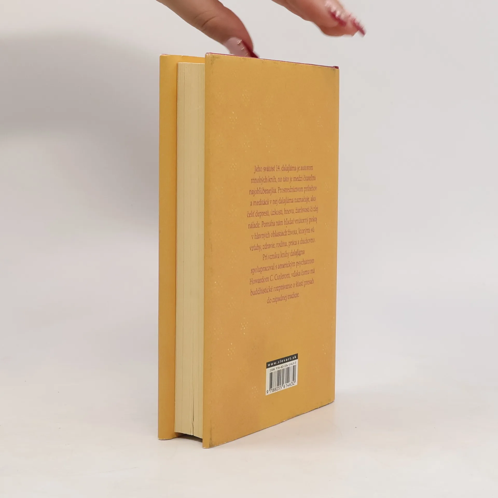 Jeho svätosť 14. dalajláma je autorom mnohých kníh, no táto je jeho najpredávanejšou. Prostredníctvom meditácií a príbehov v nej dalajláma ukazuje, ako čeliť depresii, úzkosti, hnevu, žiarlivosti alebo zlej nálade. Pomôže nám nájsť vnútorný pokoj v hlavných oblastiach života, ktorými sú vzťahy, zdravie, rodina, práca a duchovno. Pri vzniku knihy dalajláma spolupracoval s americkým psychiatrom Howardom C. Cutlerom, vďaka čomu má buddhistické rozprávanie o šťastí presah do západniarskej tradície.