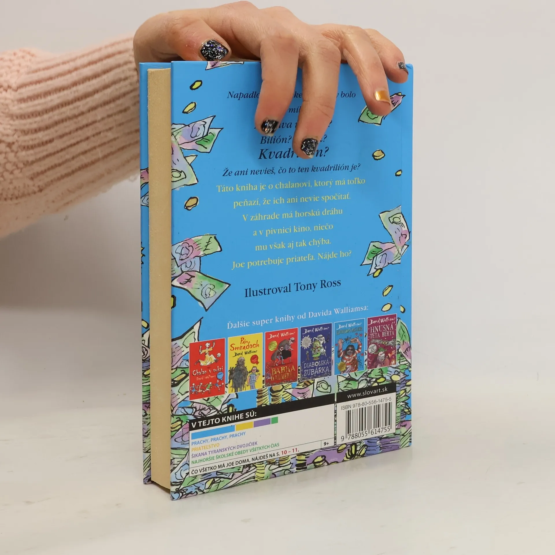 Ďalšia kniha od svetoznámeho britského komika a autora detských kníh Davida Walliamsa rozpráva je príbehom chlapca, z ktorého sa akoby zázrakom stane zo dňa na deň milionár. Dvanásťročný Joe tak má zrazu všetko, na čo si len spomenie. Vlastnú Formulu 1, nahrávacie štúdio, žraloka, dokonca aj komorníka, ktorý je... Čo myslíte? No predsa orangutan! Má to ale niekto v živote šťastie! Veď čo viac si môže chalan v jeho veku priať? Ale Joeovi k šťastiu predsa len niečo chýba. Ozajstný priateľ. Podarí sa mu ho nájsť? Prezradíme len toľko, že pri to hľadaní nebude mať ľahké. Pochopí aj to, že peniaze naozaj nie sú všetko.