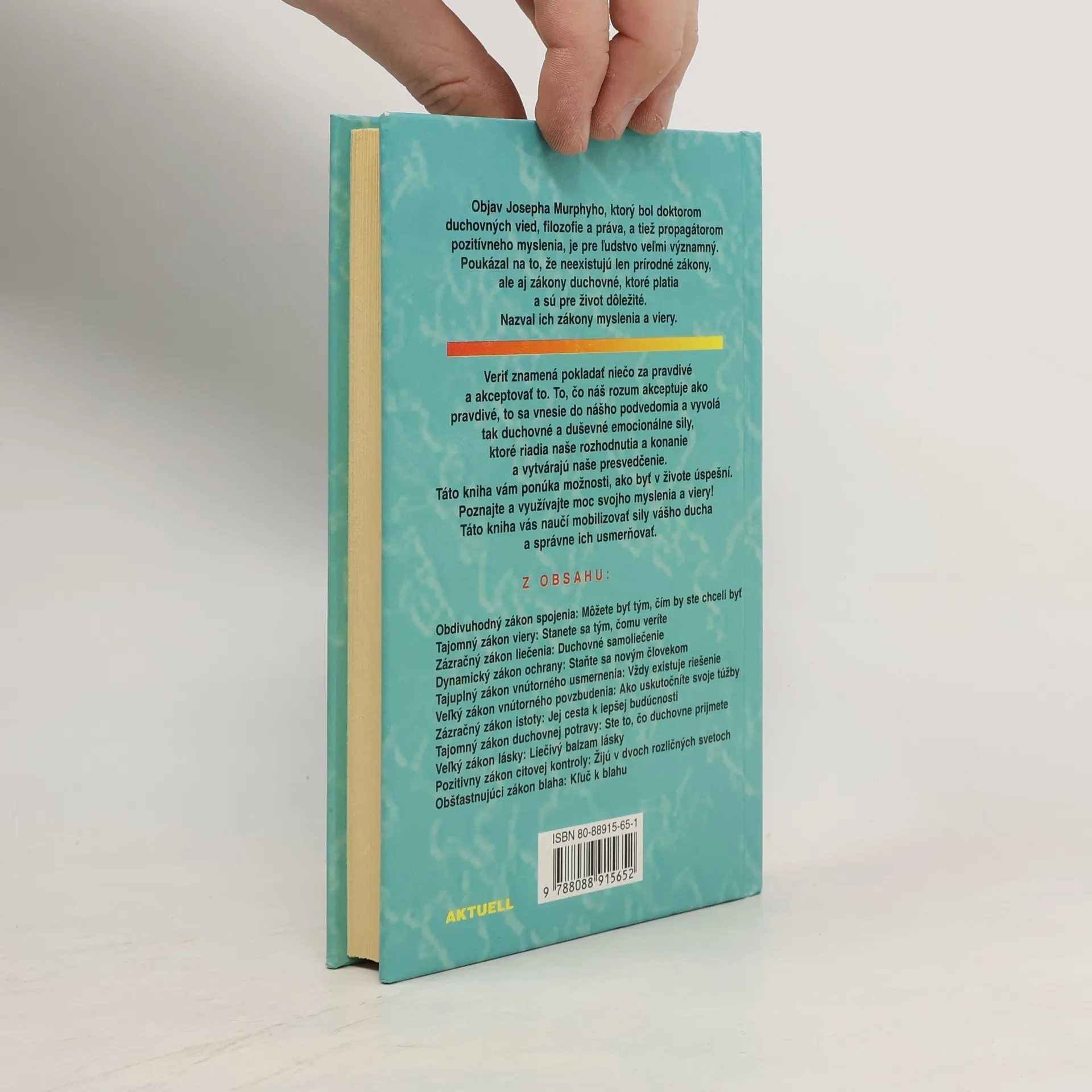 Objev Josepha Murphyho, kterž byl doktorem duchovních věd, filozofie a práva a propagátorem pozitivního myšlení, je pro lidstvo velmi významný. Prokázal, že existují nejen přírodní zákony, ale také zákony duchovní, které jsou platné a důležité pro život. Nazval je zákony myšlení a víry. Věřit znamená považovat něco za pravdivé a akceptovat to. Co náš rozum akceptuje jako pravdivé, to se vtiskne do našeho podvědomí a vyvolá duchovní a duševní emocionální síly, které řídí naše rozhodnutí a konání a uskutečüjí v živote naše přesvědčení. Tato kniha nabízí možnost, jak být v životě úspěšní, jak mobilizovat síly vašeho ducha a správně je nasměrovat.