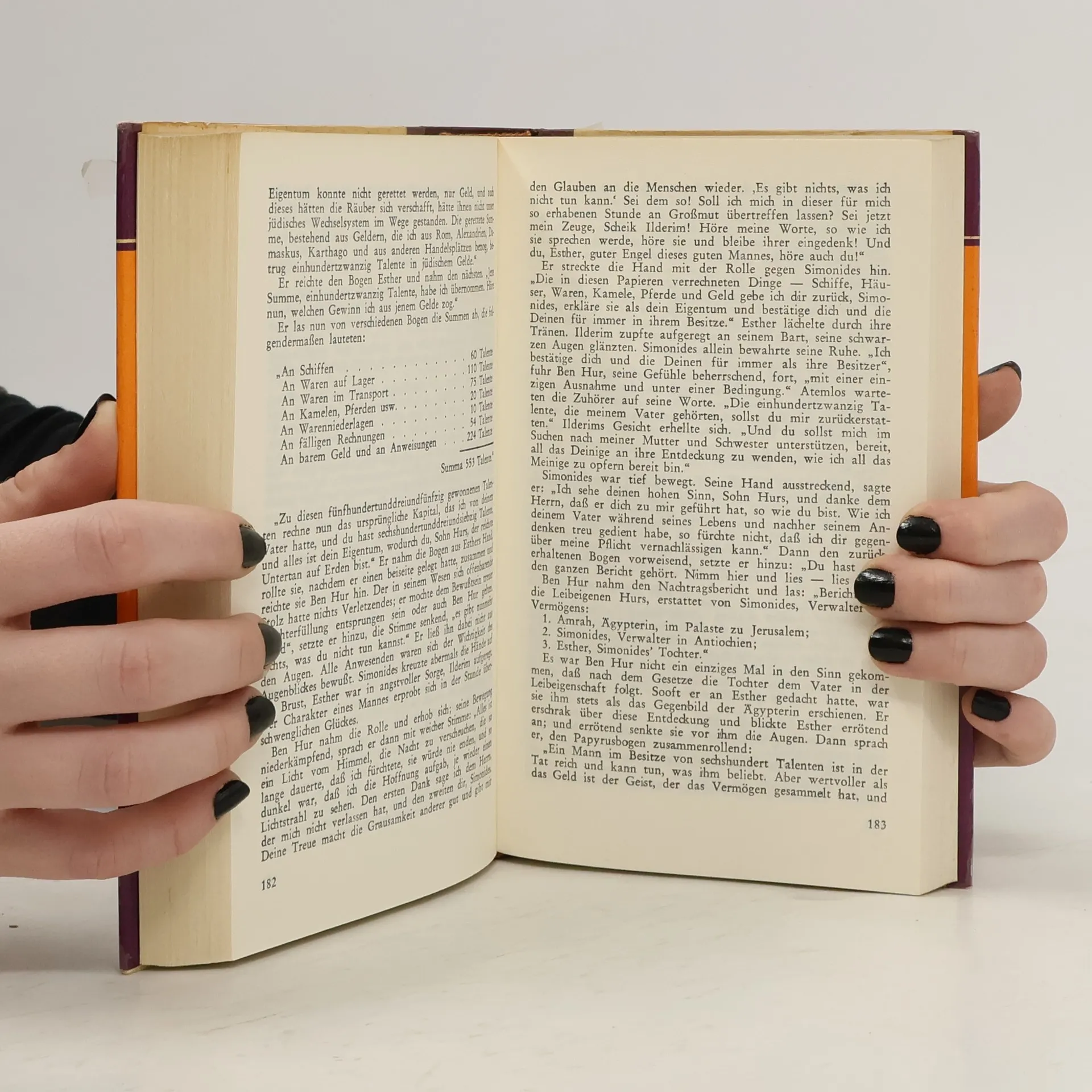 Als der römische Statthalter von Judäa bei seinem Einzug in Jerusalem von einem herabfallenden Ziegelstein lebensgefährlich verletzt wird, verurteilt man den jungen Judah Ben Hur wegen eines angeblichen Attentats, dessen sein einstiger Jugendfreund Messala ihn bezichtigt, zu lebenslangem Galeerendienst. Seine Mutter und seine Schwester werden ins Gefängnis geworfen. Als er einige Jahre später während einer Seeschlacht den Oberbefehlshaber der römischen Flotte vor dem Ertrinken rettet, schenkt dieser ihm die Freiheit. Ben Hur macht sich auf die Suche nach seiner Familie und seinem Widersacher, den er schließlich in einem dramatischen Zweikampf im Wagen-rennen herausfordert. Ben Hur ist eines der meistgelesenen Bücher der Welt. Es führt den Leser in die Zeit Christi und läßt ihn teilhaben am Schicksal des unrechtmäßig zum Galeerendienst verurteilten Judah Ben Hur und seiner Familie.