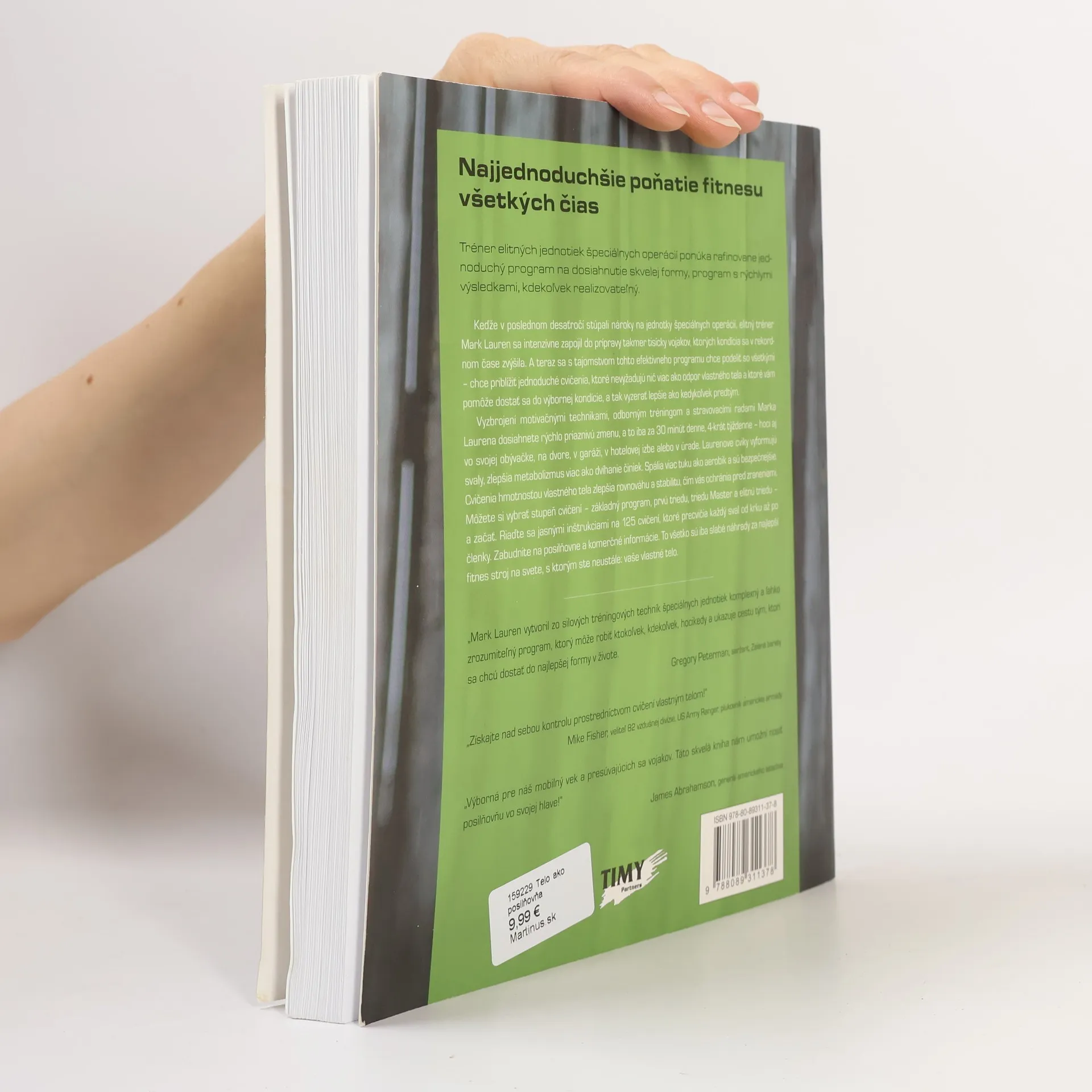 Využite svoje telo na jeho vytvarovanie podľa svojich predstáv! Doteraz neexistuje podobná kniha. Od antických olympijských športovcov po dnešné špeciálne operácie, najlepšie fyzicky vybavené bytosti sa nespoliehali na fitnes centrá alebo činky. „Čo ak vám poviem, že už dávno máte najdokonalejší posilňovací prístroj? Svoje vlastné telo,“ hovorí autor. Programy a cvičenia v tejto knihe sú výsledkom rokov zdokonaľovania pri príprave nováčikov amerických špeciálnych jednotiek na extrémne požiadavky. Autor vyvinul nové tréningové princípy, ktoré sa osvedčili, a dnes ich využívajú najvyspelejšie armádne zložky. Tieto cvičenia sú základom silového tréningu a teraz sú dostupné aj vám. Nezáleží na tom, či ste nadšenec pre fitnes, olympionik, kulturista, jogín alebo niekto, kto nikdy nič nezdvihol – tento program vás privedie k najlepšej kondícii v živote. Ponúka 125 najefektívnejších cvikov, ktoré si môžete prispôsobiť a meniť podľa svojich potrieb. Pre tých, ktorí potrebujú usmernenie, je pripravený desaťtýždňový program pre všetky úrovne kondície, ktorý vyžaduje iba 20 až 30 minút cvičenia denne, 4 alebo 5-krát týždenne.