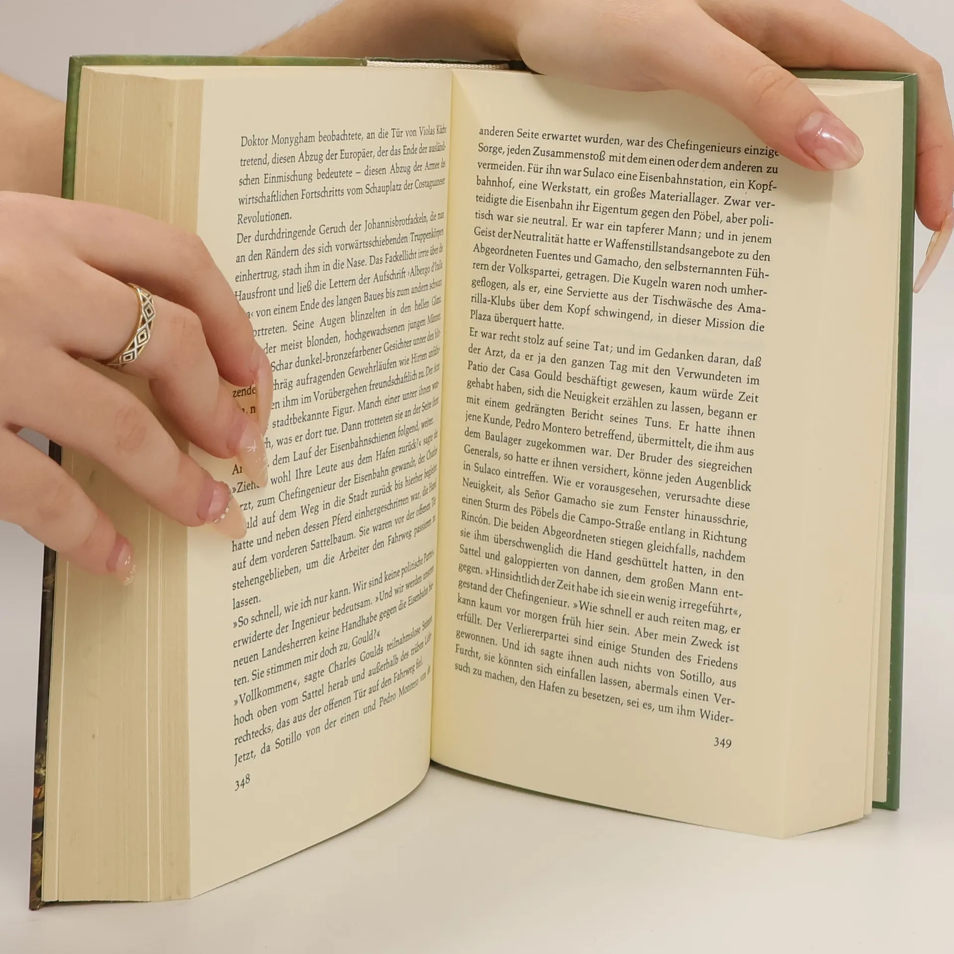 "In der fiktiven Republik Costaguano geht es hoch her - Bürgerkriege und Diktatoren prägen die Geschichte des Landes. Conrad entwickelt vor des Lesers Auge sprachmächtig die komplexen Zusammenhänge aus Bodenschätzen, unterschwelligen Klassenkämpfen, einem zu mächtigen Militär und einer ewigen Spirale von Gewalt und Gegengewalt in einer Republik, die nie wirklich zur Ruhe kommt. Hätte er nicht ebenso gut über Bürgerkriegsgebiete unserer Tage schreiben können?" Redaktion Gröls-Verlag (Edition Werke der Weltliteratur)