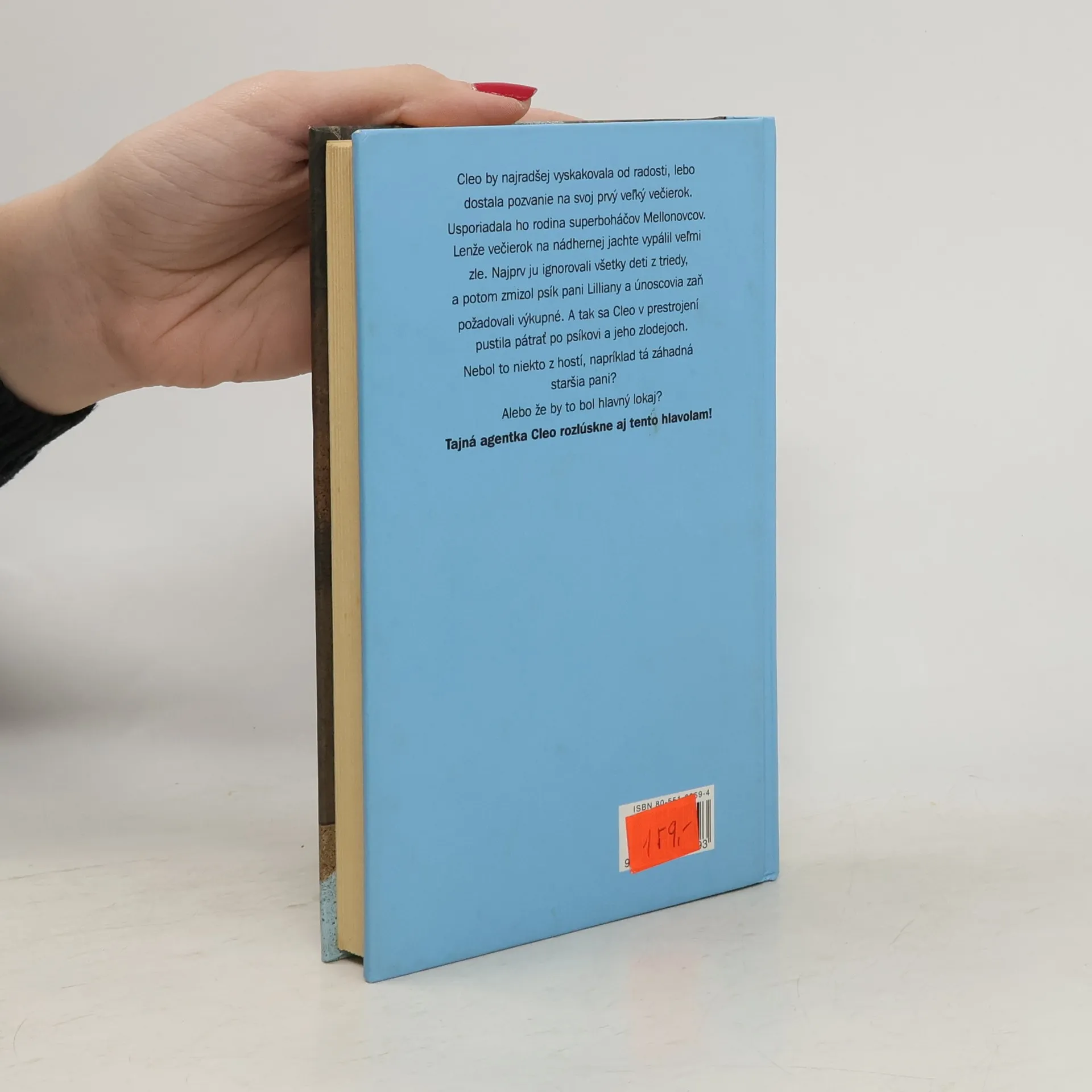 Cleo by najradšej vyskakovala od radosti, lebo dostala pozanie na svoj prvý veľký večierok. Usporiadala ho rodina superboháčov Mellonovcov. Lenže večierok na nádhernej jachte vypálil veľmi zle. Najprv ju ignorovali všetky deti z triedy, a potom zmizol psík pani Lilliany a únoscovia zaň požadovali výkupné. A tak sa Cleo v prestrojení pustila pátrať po psíkovi a jeho zlodejoch. Nebol to niekto z hostí, napríklad tá záhadná staršia pani? Alebo že by to bol hlavný lokaj? Tajná agentka Cleo rozlúskne aj tento hlavolam!