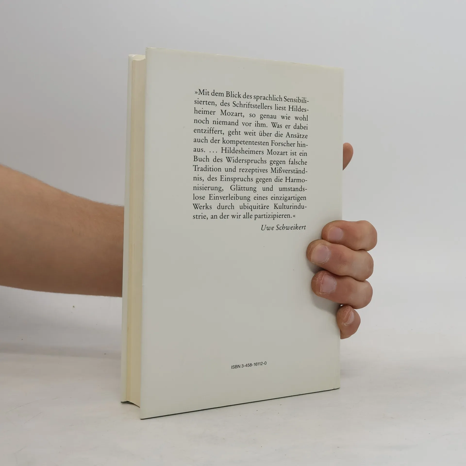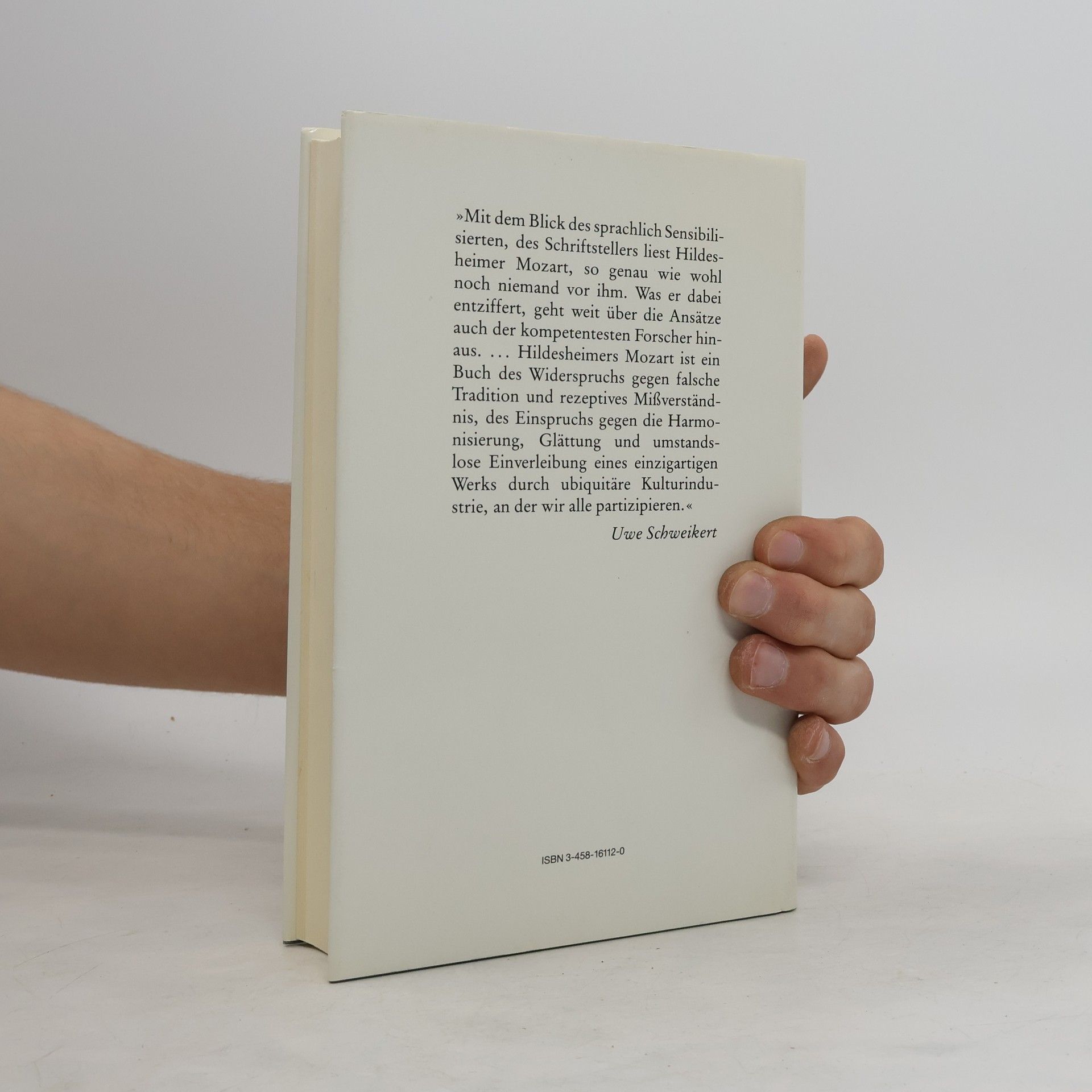 Hildesheimers Mozart ist nicht das Buch eines Musikologen, es ist keine Biographie, in welchem Sinne auch immer, es ist das Buch eines Schriftstellers und Künstlers, der dem kreativen Prozeß der Kunst um einiges nähersteht, der, geschult durch Psychoanalyse, versucht, den Prozessen des Schöpferischen auf den Grund zu kommen, der aber nicht dem Fehler verfällt, sich der eigenen Seele als Maßstab für die seines Helden zu bedienen.