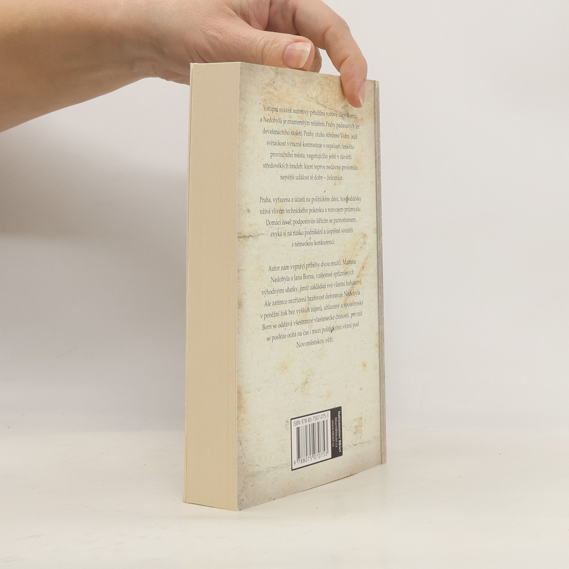 Úvodní svazek rozměrného cyklu o osudech dvou pražských měšťanských rodů od poloviny 19. století až do poloviny století dvacátého. Autor líčí Prahu jako ospalé město, které se teprve probouzí a pomalu začíná konkurovat Vídni. V těchto podmínkách vznikají dva rody, jejichž osudy autor sleduje v celém cyklu. Zakladatelem prvního je Jan Born, majitel obchodu s uměleckými předměty. Druhou rodinu zakládá Martin Nedobyl, zběhlý student, který otcovo formanství přemění na první českou zasilatelskou firmu. Obě rodiny jsou zpřízněny a oba muži ztrácejí své manželky při železničním neštěstí. Born snáší ztrátu důstojně, ale v Nedobylovi neštěstí zničilo všechno, co v něm bylo lidského.