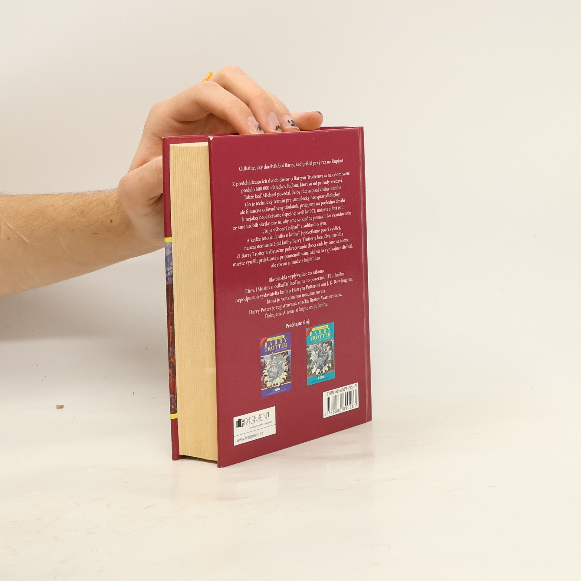 Z predchádzajúcich dvoch dielov o Barrym Trotterovi sa na celom svete predalo 600 000 výtlačkov ľuďom, ktorí sú od prírody zvedaví. Takže keď Michael povedal, že by rád napísal knihu o knihe (čo je technický termín pre umelecky neospravedlniteľný, ale finančne odôvodnený dodatok, prilepený na poslednú chvíľu k nejakej neočakávane úspešnej sérii kníh), môžete si byť istí, že sme urobili všetko pre to, aby sme sa kladne postavili ku skandovaniu To je výborný nápad a súhlasili s tým. A keďže toto je kniha o knihe (vysvetlenie pozri vyššie), naozaj nemusíte čítať knihy Barry Trotter a bezočivá paródia či Barry Trotter a zbytočné pokračovanie (hoci radi by sme na tomto mieste využili príležitosť a pripomenuli vám, aké sú to vynikajúce dielka), ale rovno si môžete kúpiť túto...