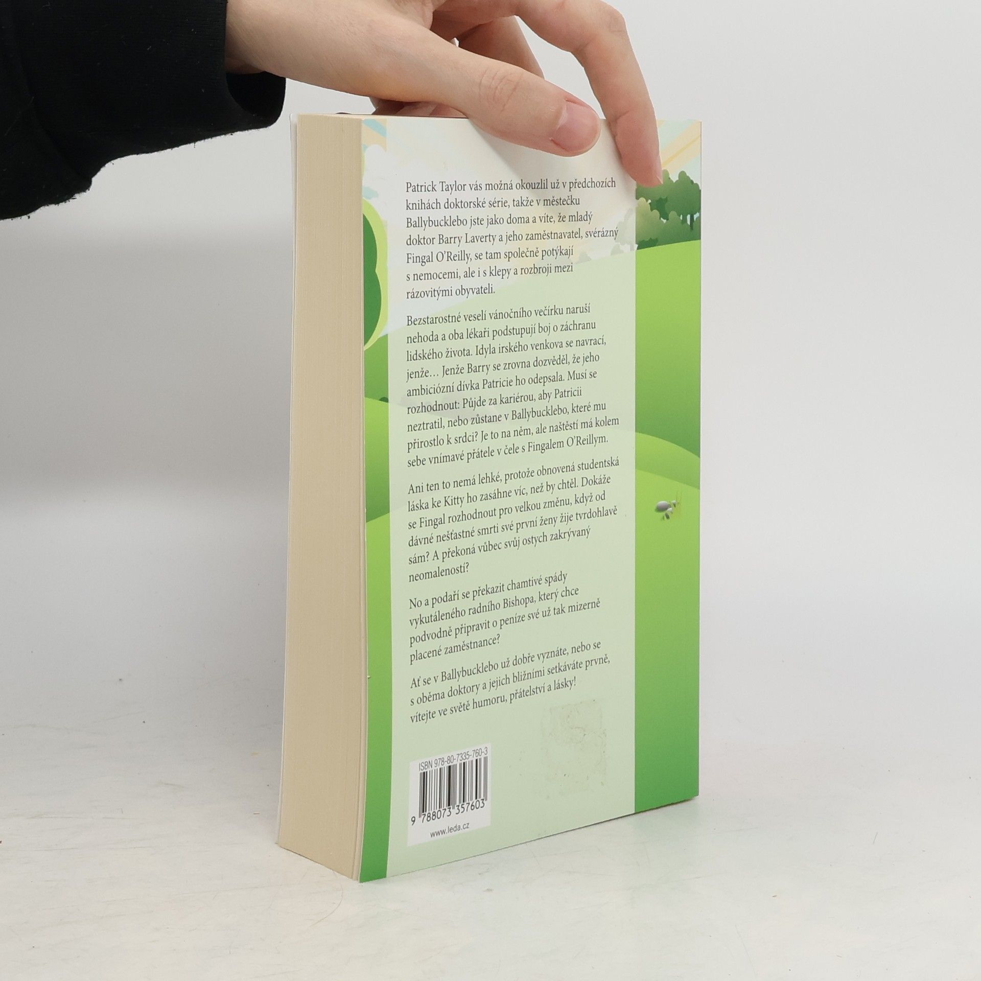 Patrick Taylor vás možná okouzlil už v předchozích knihách doktorské série, takže v městečku Ballybucklebo jste jako doma a víte, že mladý doktor Barry Laverty a jeho zaměstnavatel, svérázný Fingal O’Reilly, se tam společně potýkají s nemocemi, ale i s klepy a rozbroji mezi rázovitými obyvateli. Bezstarostné veselí vánočního večírku naruší nehoda a oba lékaři podstupují boj o záchranu lidského života. Idyla irského venkova se navrací, jenže… Jenže Barry se zrovna dozvěděl, že jeho ambiciózní dívka Patricie ho odepsala. Musí se rozhodnout: Půjde za kariérou, aby Patricii neztratil, nebo zůstane v Ballybucklebo, které mu přirostlo k srdci? Je to na něm, ale naštěstí má kolem sebe vnímavé přátele v čele s Fingalem O’Reillym. Ani ten to nemá lehké, protože obnovená studentská láska ke Kitty ho zasáhne víc, než by chtěl. Dokáže se Fingal rozhodnout pro velkou změnu, když od dávné nešťastné smrti své první ženy žije tvrdohlavě sám? A překoná vůbec svůj ostych zakrývaný neomaleností? No a podaří se překazit chamtivé spády vykutáleného radního Bishopa, který chce podvodně připravit o peníze své už tak mizerně placené zaměstnance? Ať se v Ballybucklebo už dobře vyznáte, nebo se s oběma doktory a jejich bližními setkáváte prvně, vítejte ve světě humoru, přátelství a lásky!