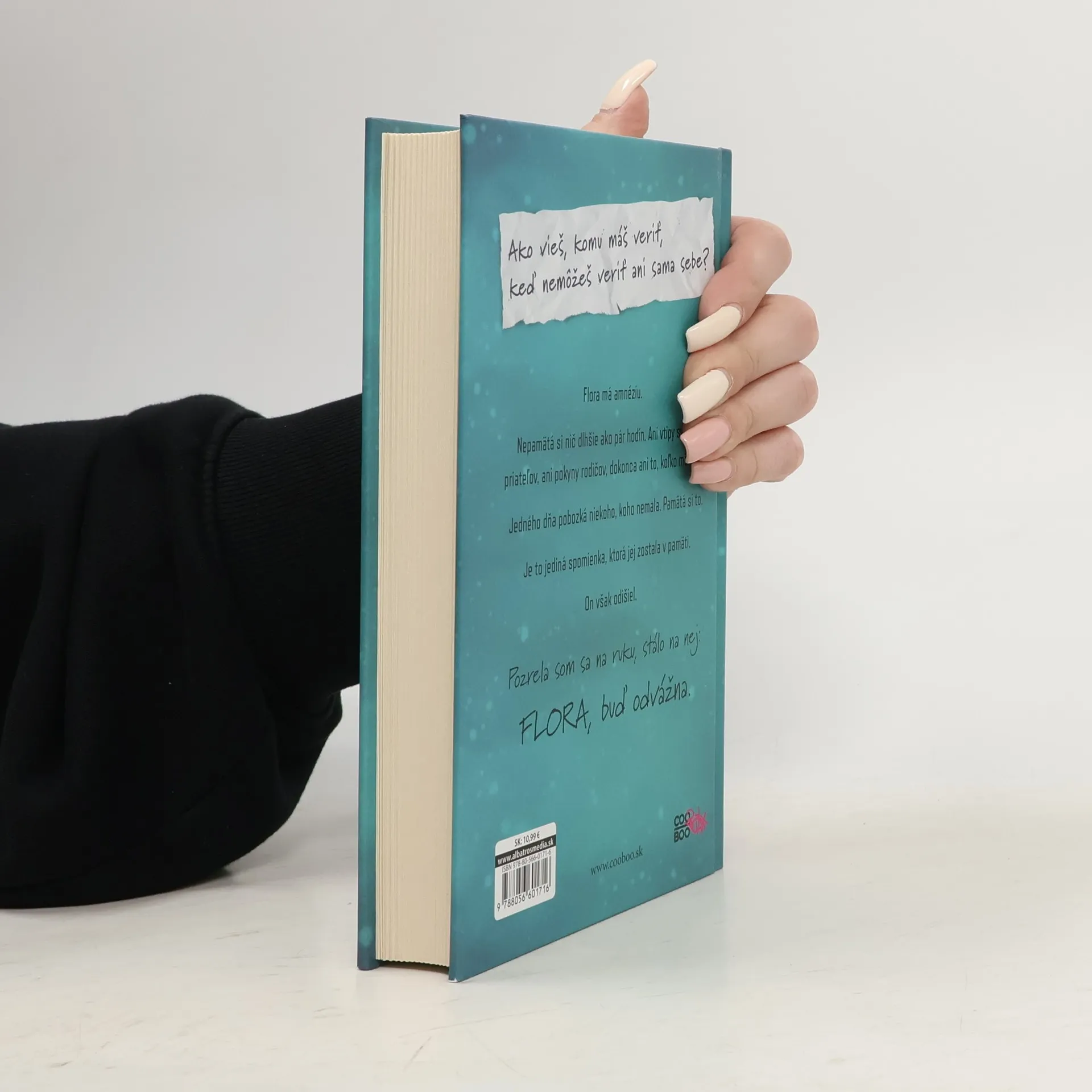 Ako vieš, komu máš veriť, keď nemôžeš veriť ani sama sebe? Flora má amnéziu. Nepamätá si nič dlhšie ako pár hodín. Ani vtipy svojich priateľov, ani pokyny rodičov, dokonca ani to, koľko má rokov. Jedného dňa pobozká niekoho, koho nemala. Pamätá si to. Je to jediná spomienka, ktorá jej zostala v pamäti. On však odišiel.