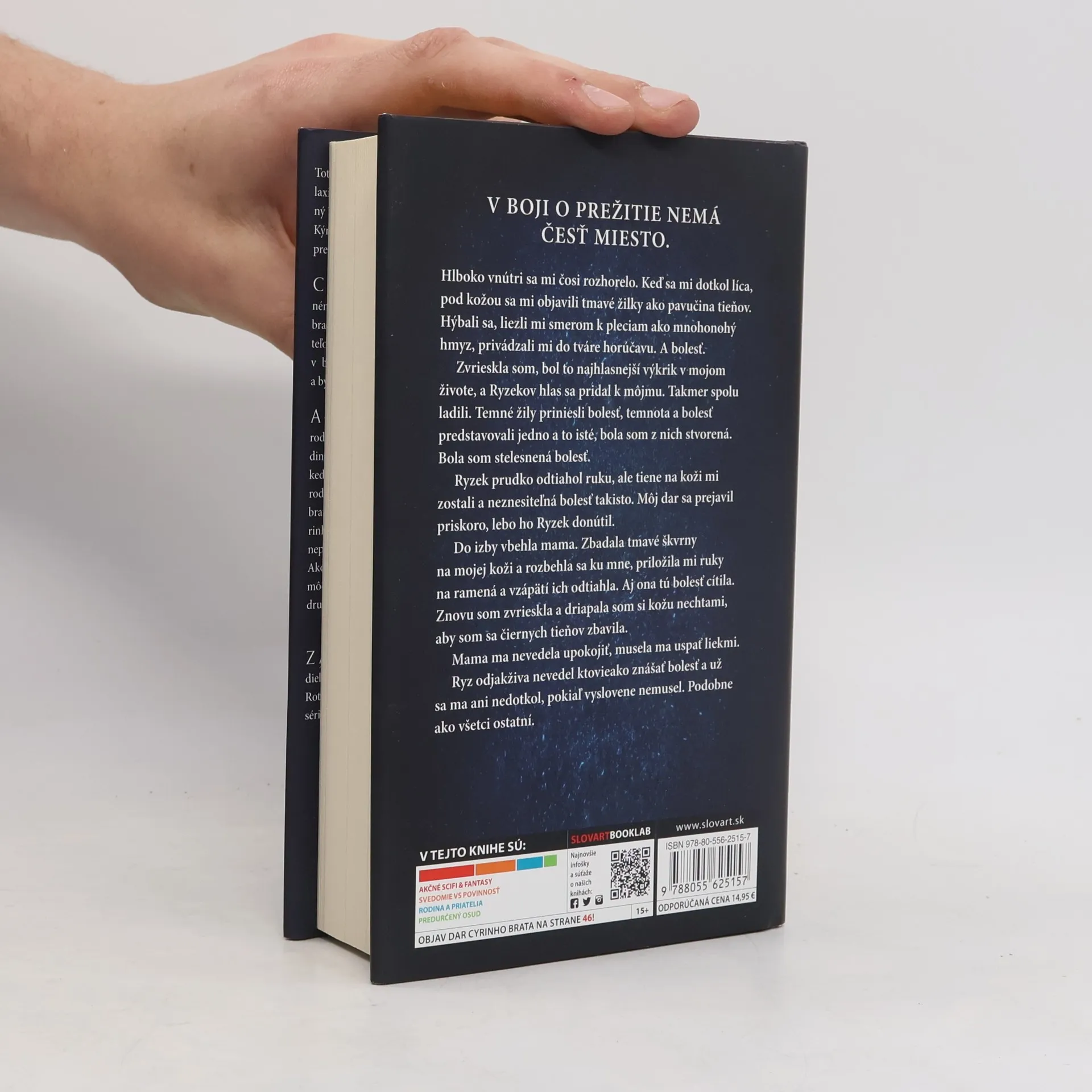 Prvý diel novej sci-fi fantasy dilógie od Veroniky Roth, autorky najpopulárnejšej dystopickej série Divergencia. Vo svete, kde panuje násilie a neprávo, v galaxii, v ktorej niektorí nažívajú v priazni osudu, má každý človek špeciálny dar. Kým väčšina dokáže vyťažiť zo svojho daru čo najviac, Akosa a Cyru pre ich dary zneužívajú. Cyra je sestrou tyrana, čo vládne bojovnému národu. Má dar bolesti a sily, čo jej brat zneužíva, aby tyranizoval svojich nepriateľov. Cyra má však na viac, ako byť nástrojom v bratových rukách. Vzdoruje, je rýchlejšia a bystrejšia, než hockto predpokladá. Akos pochádza z mierumilovného národa a je nadovšetko oddaný rodine. Hoci ho ochraňuje jeho neobyčajný dar, keď ho s bratom chytia vojaci vyslaní Cyrinou rodinou, Akos sa snaží len o jediné – zachrániť najskôr brata na úkor vlastného bezpečia. Akos sa tak v sekunde ocitá uprostred Cyrinho sveta, kde panuje neopísateľné nepriateľstvo medzi ich rodinami a národmi. Akos a Cyra stoja pred rozhodnutím – pomôcť si navzájom a prežiť, alebo priniesť jeden druhému skazu.