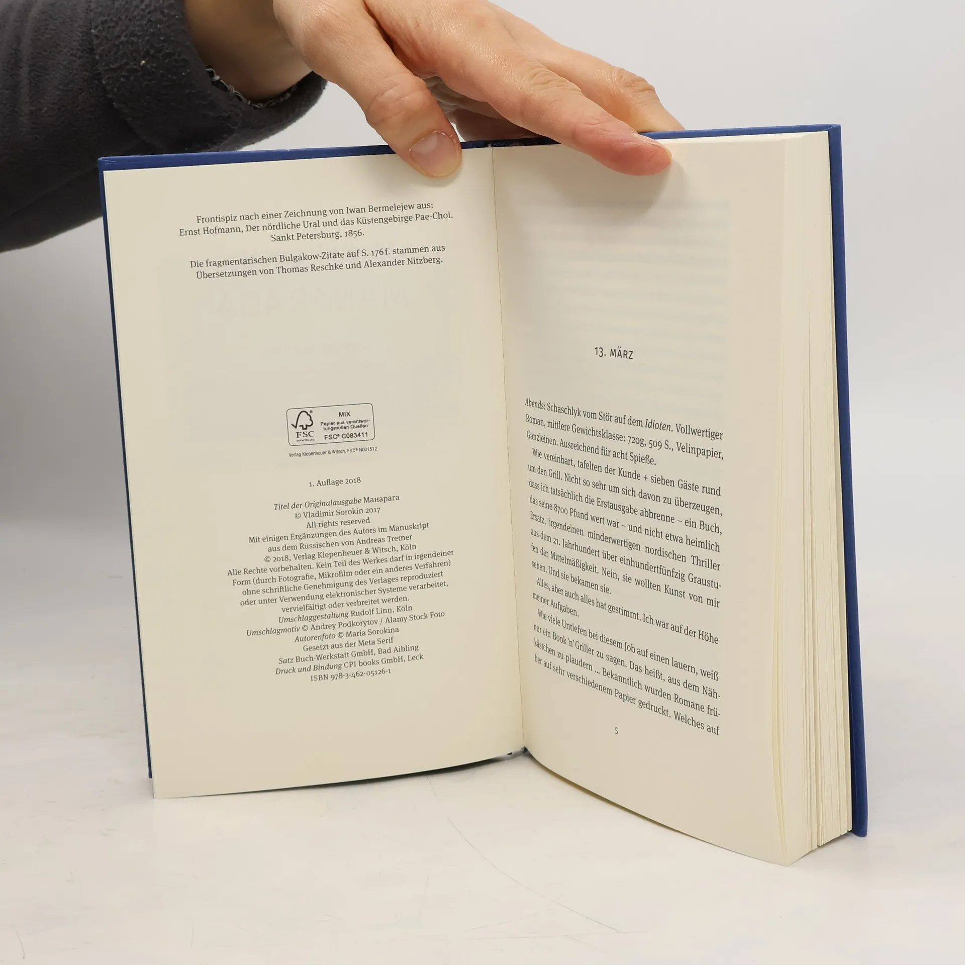 Nach »Der Schneesturm« und »Telluria« ein neues groteskes Meisterwerk von Vladimir Sorokin In der zweiten Hälfte des 21. Jahrhunderts werden Bücher nicht mehr gelesen, geschweige denn neu gedruckt, sie dienen als Brennmaterial für die Zubereitung exklusiver Speisen. Book’n’Grill heißt der neue Trend und Chefkoch Geza ist sein Hohepriester. Stör-Schaschlik über Dostojewskis »Der Idiot« oder Schnitzel über Arthur Schnitzler, mit diesen und anderen Kreationen begeistert er seine zahlungskräftige Klientel. Doch was Erfolg hat, findet auch Nachahmer und so sieht sich Geza plötzlich vor unerwartete Probleme gestellt. Ein geniales Romanfeuerwerk voll absurder Einfälle und beißender Gesellschaftskritik.