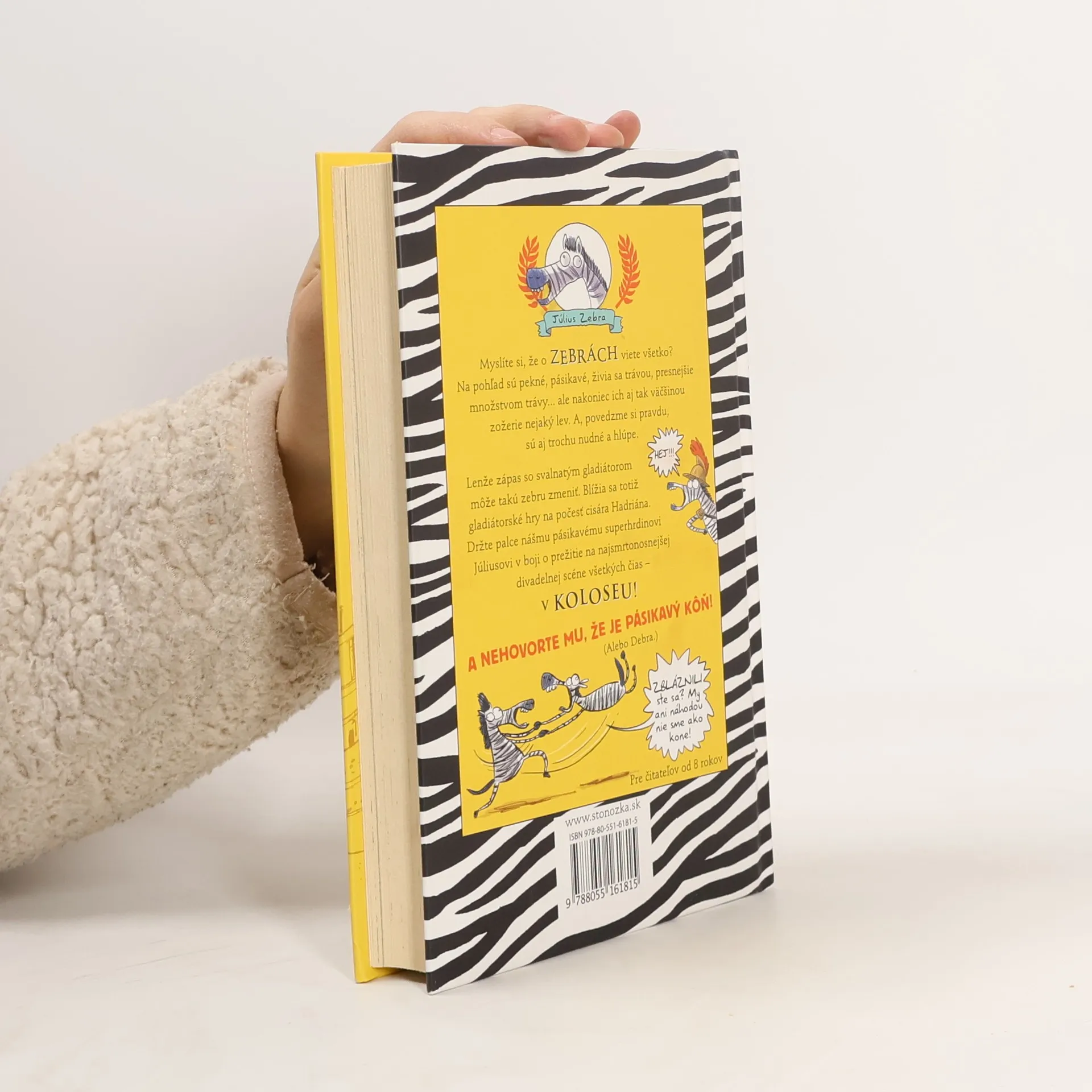 Myslíte si, že o zebrách viete všetko? Na pohľad sú pekné, pásikavé, živia sa trávou, presnejšie množstvom trávy... ale nakoniec ich aj tak väčšinou zožerie nejaký lev. A, povedzme si pravdu, sú aj trochu nudné a hlúpe. Lenže zápas so svalnatým gladiátorom môže takú zebru zmeniť. Blížia sa totiž gladiátorské hry na počesť cisára Hadriána. Držte palce nášmu pásikavému superhrdinovi Júliusovi v boji o prežitie na najsmrtonosnejšej divadelnej scéne všetkých čias – v KOLOSEU! A nehovorte mu, že je pásikavý kôň! (Alebo žebra.) Zbláznili ste sa? My ani náhodou nie sme ako kone! Hej!!!