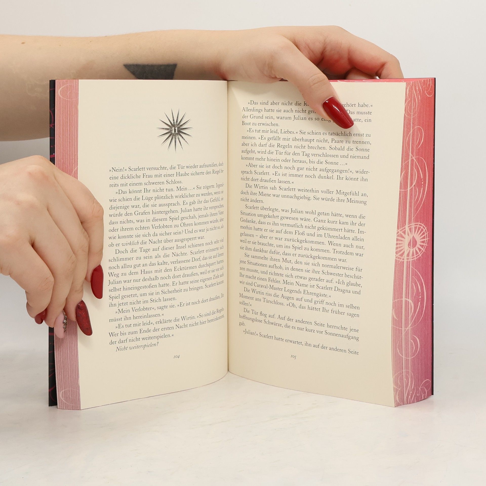 Pure Magie Das Bestseller-Debüt von Stephanie Garber entführt in eine Welt voller fantastischer Spiele und Illusionen: Im ersten Band der »Caraval«-Serie lernt die junge Scarlett den Reiz und die Gefahren des geheimnisvollen Spiels Caraval kennen. »Was auch immer ihr über Caraval gehört habt, es kommt der Wirklichkeit nicht einmal nahe. Es ist mehr als nur ein Spiel oder eine Vorstellung. Es ist das, was der Magie in dieser Welt am nächsten kommt.« Scarlett und ihre Schwester Tella leben auf der kleinen Insel Trisda. Ihr Vater, der Governor der Insel, ist ein grausamer und gewalttätiger Mann. Daher wünschen sich die beiden nichts sehnlicher, als ihrer Heimat zu entfliehen. Das seltsame und sagenumwobene Spiel Caraval erscheint den beiden wie das Tor zu einer neuen Welt. Endlich erhalten sie ihre Einladung und entkommen mithilfe des geheimnisvollen Seemanns Julian aus Trisda. Doch ehe sie sich versehen, finden sich die zwei Schwestern inmitten von Rätseln und Intrigen wieder. Ist Tellas Kidnapping Teil der Performance von Caravals ominösem Organisator Legend, oder wurde sie wirklich entführt? Wer ist Julian wirklich, und was steht am Ende tatsächlich auf dem Spiel? Nichts ist mehr so, wie es scheint. Young-Adult-Fantasy über die magische Erfüllung von Träumen, Abenteuer, Freiheit und Verrat – auf TikTok gefeiert! Mit »Caraval« ist der New-York-Times-Bestsellerautorin Stephanie Garber etwas ganz Besonderes gelungen. Die Erschaffung ihrer faszinierenden Welt um ein rätselhaftes Spiel hat auf ihre Leser eine unbestreitbare Sogwirkung: Ganze 14 Wochen stand Garbers Debütroman auf der New-York-Times-Bestsellerliste. »Über alle Maßen fantasievoll und verzaubernd ... pure Magie.« – Cecelia Ahern »Stephanie Garber hat einen spannenden Fantasythriller für junge Erwachsene geschrieben. Wer Verwirrspiele im Stil von Filmen wie ›Wild things‹ oder ›The Game‹ mag, wird das Buch lieben.« ― Südhessen Woche