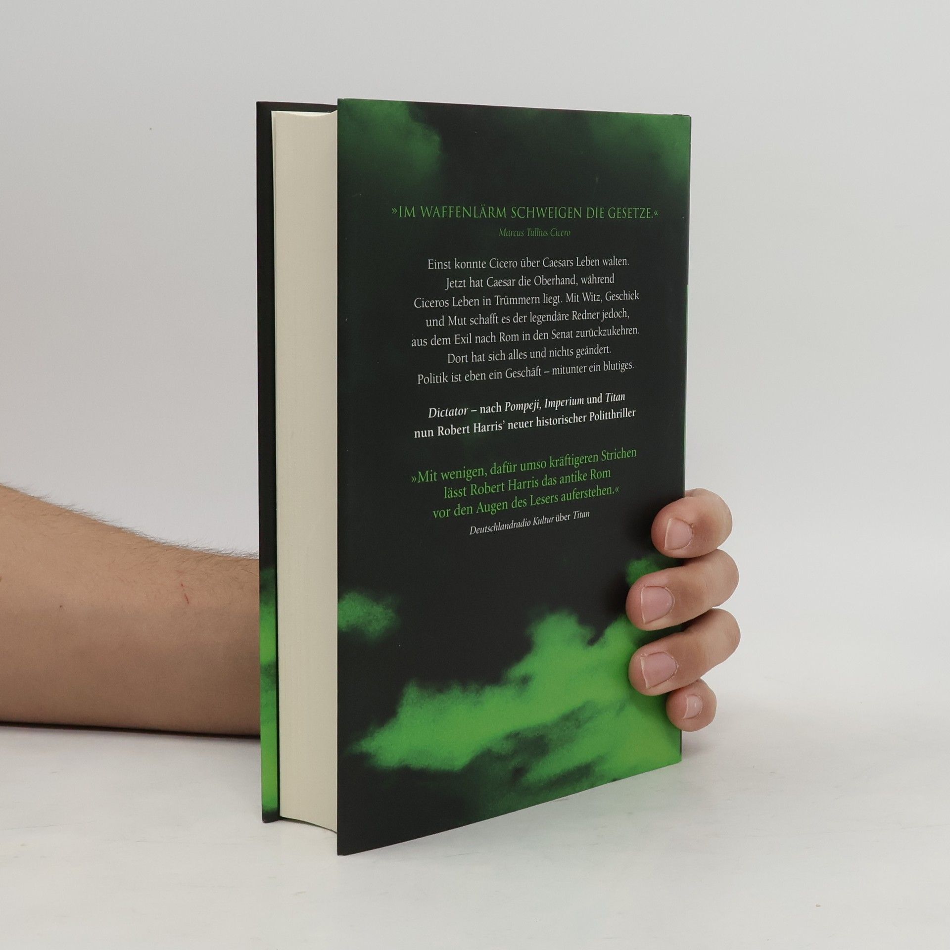 Cicero, größter Redner seiner Zeit, weilt mit seinem Sekretär Tiro im Exil. Da er seinen politischen Feind Caesar zu unterstützen verspricht, kann er nach Rom zurückkehren, wo er sich wieder zu öffentlichem Ansehen emporkämpft. Genial und fehlbar, angsterfüllt und doch unbändig mutig – der mit sich ringende Mensch hinter dem Politiker Cicero macht die Geschichte so unwiderstehlich. Dictator umfasst bedeutsame Momente der Menschheitsgeschichte: den Untergang der römischen Republik, den folgenden Bürgerkrieg, die Enthauptung von Pompeius und den Meuchelmord an Caesar. Das Thema jedoch ist zeitlos: Wie lässt sich politische Freiheit gegen skrupellosen Ehrgeiz, korrumpierte Wahlen und den verderblichen Einfluss endloser Auslandseinsätze schützen?