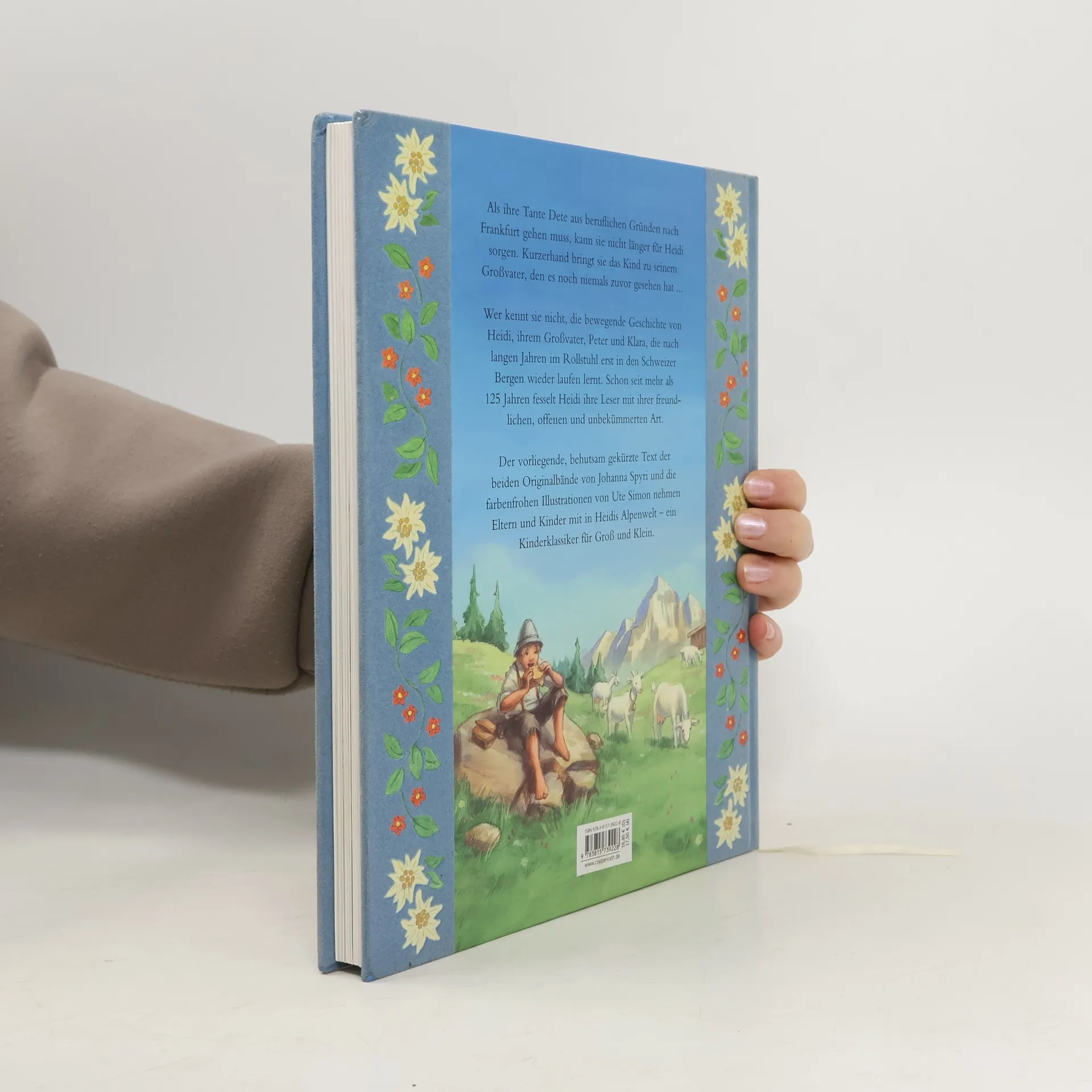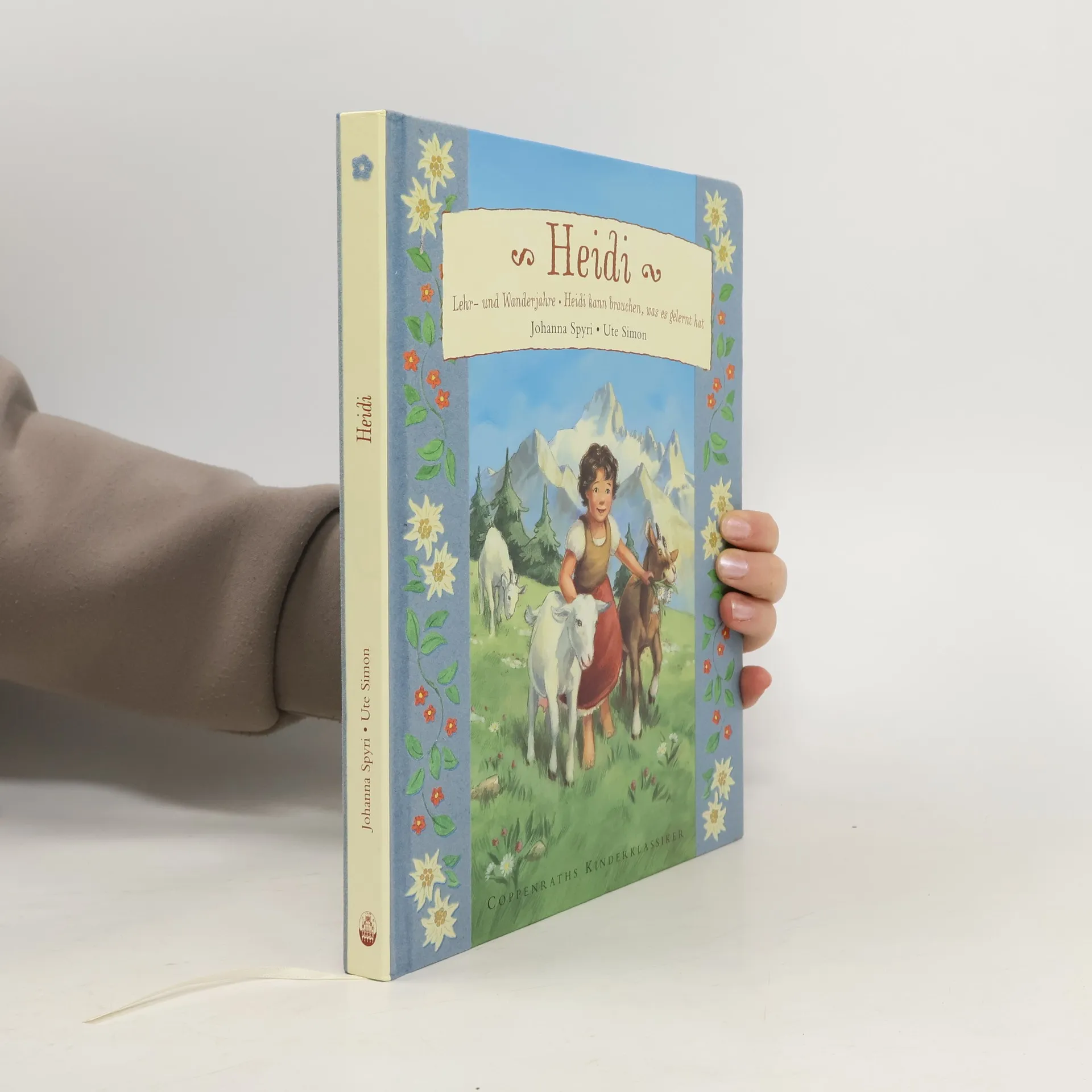 Der berühmte Kinderbuchklassiker, erstmals 1888 erschienen, 2bändig in der ursprünglichen Form und Sprachgestalt des Originals veröffentlicht (BA 7/02; 11/04), wurde in gekürzter, maßvoll modernisierter Form 2001 bei Arena verlegt (BA 11/01), danach in der Reihe Arena Bücherbär in einer weiteren, noch stärker gerafften Bearbeitung für Erstleser (BA 10/04). Die vorliegende Edition in der mit Textilrücken ansprechend gestalteten Reihe "Coppenraths Kinderklassiker", in der bereits "Peterchens Mondfahrt" und "Pinocchio" (BA 9/05) erschienen sind, ist behutsam gekürzt, der kantigere, kraftvolle Originaltext sachte geglättet. Hervorzuheben ist der angenehm lesbare Druck und die vielen, oft über 2 Doppelseiten reichenden Illustrationen. Sie sind, in matten Farben koloriert und in ihrer Naivität anrührend, von altertümelndem Charme. Das trifft auch zu für das heitere, verlockend farbige Umschlagbild. Ein kurzes Nachwort informiert über die Autorin. Auch als Vorlesestoff schon für Vorschulkinder breit zu empfehlen.. Die Erlebnisse von Heidi, die in den Schweizer Bergen bei ihrem Großvater, dem "AlmÖhi", aufwächst und mit ihrer Fröhlichkeit alle in ihrer Umgebung ansteckt. Ab 6.