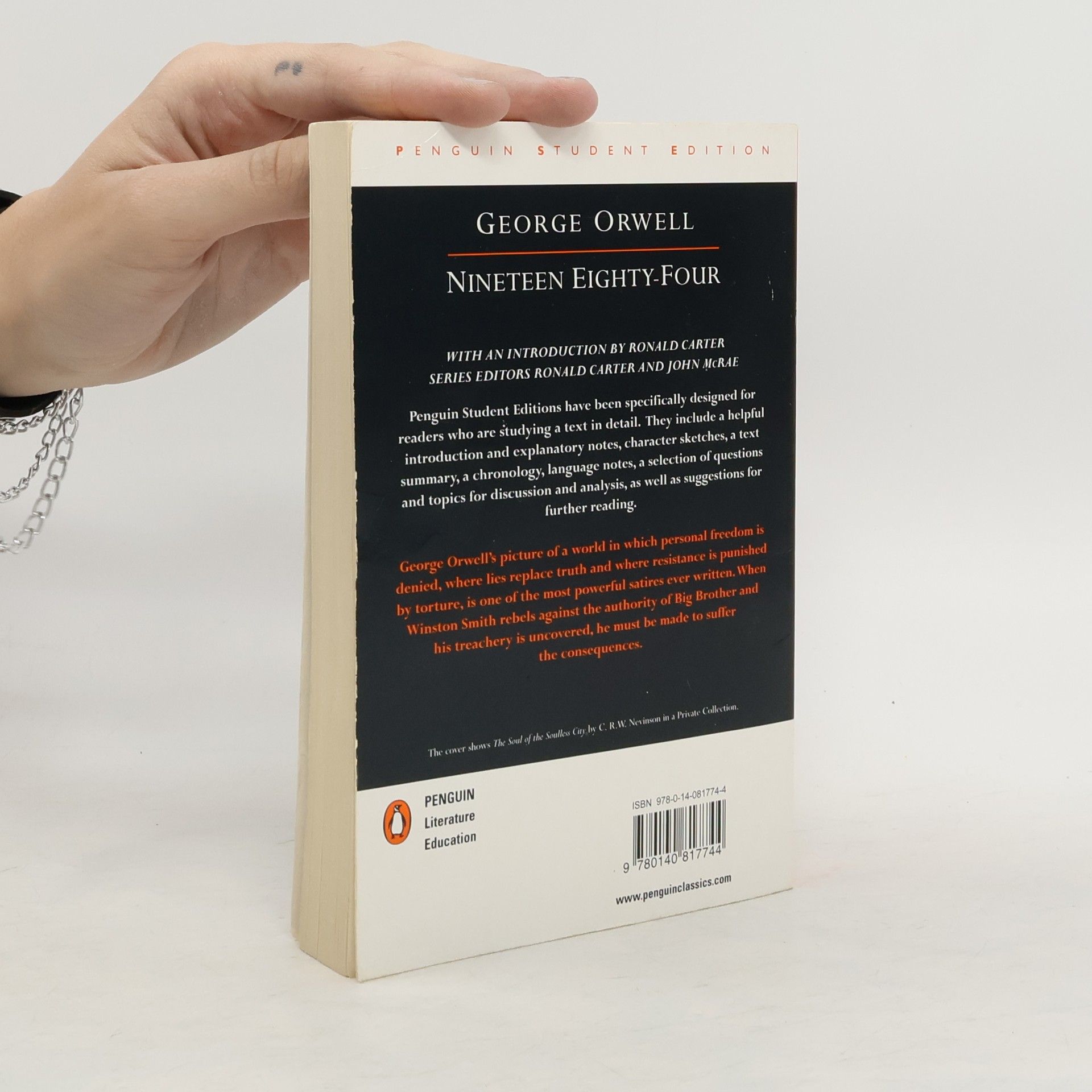 Hidden away in the Record Department of the sprawling Ministry of Truth, Winston Smith skilfully rewrites the past to suit the needs of the Party. Yet he inwardly rebels against the totalitarian world he lives in, which demands absolute obedience and controls him through the all-seeing telescreens and the watchful eye of Big Brother, symbolic head of the Party. In his longing for truth and liberty, Smith begins a secret love affair with a fellow-worker Julia, but soon discovers the true price of freedom is betrayal.
