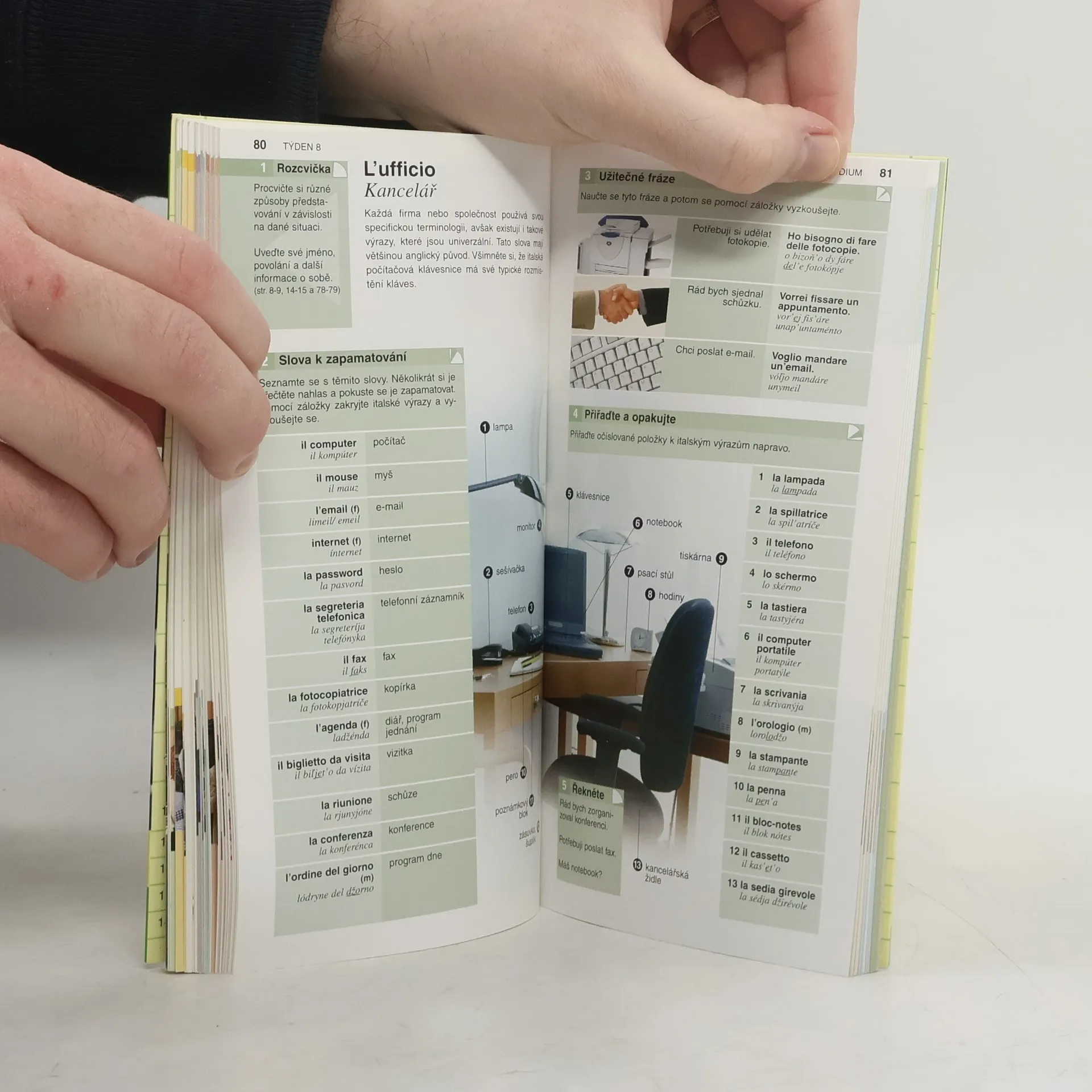 Učebnice pro začátečníky a mírně pokročilé. Nevyžaduje žádné předchozí znalosti jazyka, výuka je formou přiměřené slovní zásoby a konverzace. Kniha jsou rozdělena do tematických celků a zahrnuje oboustranný slovníček i průvodce jídelním lístkem.