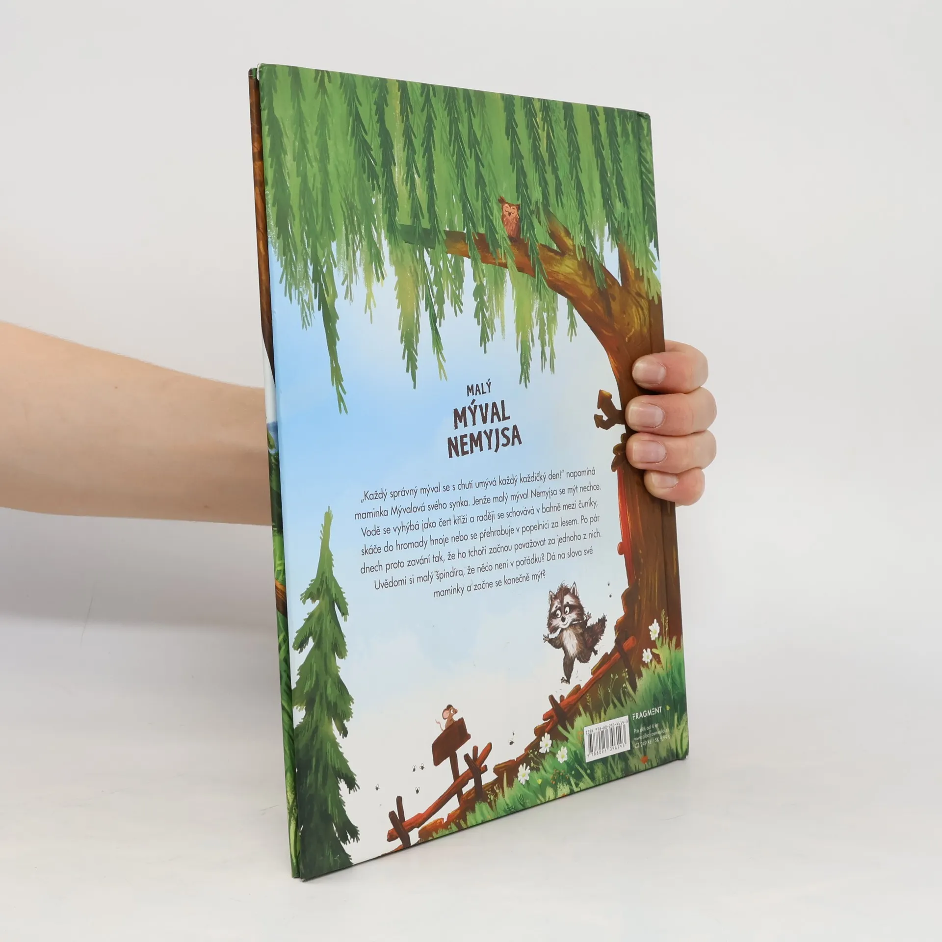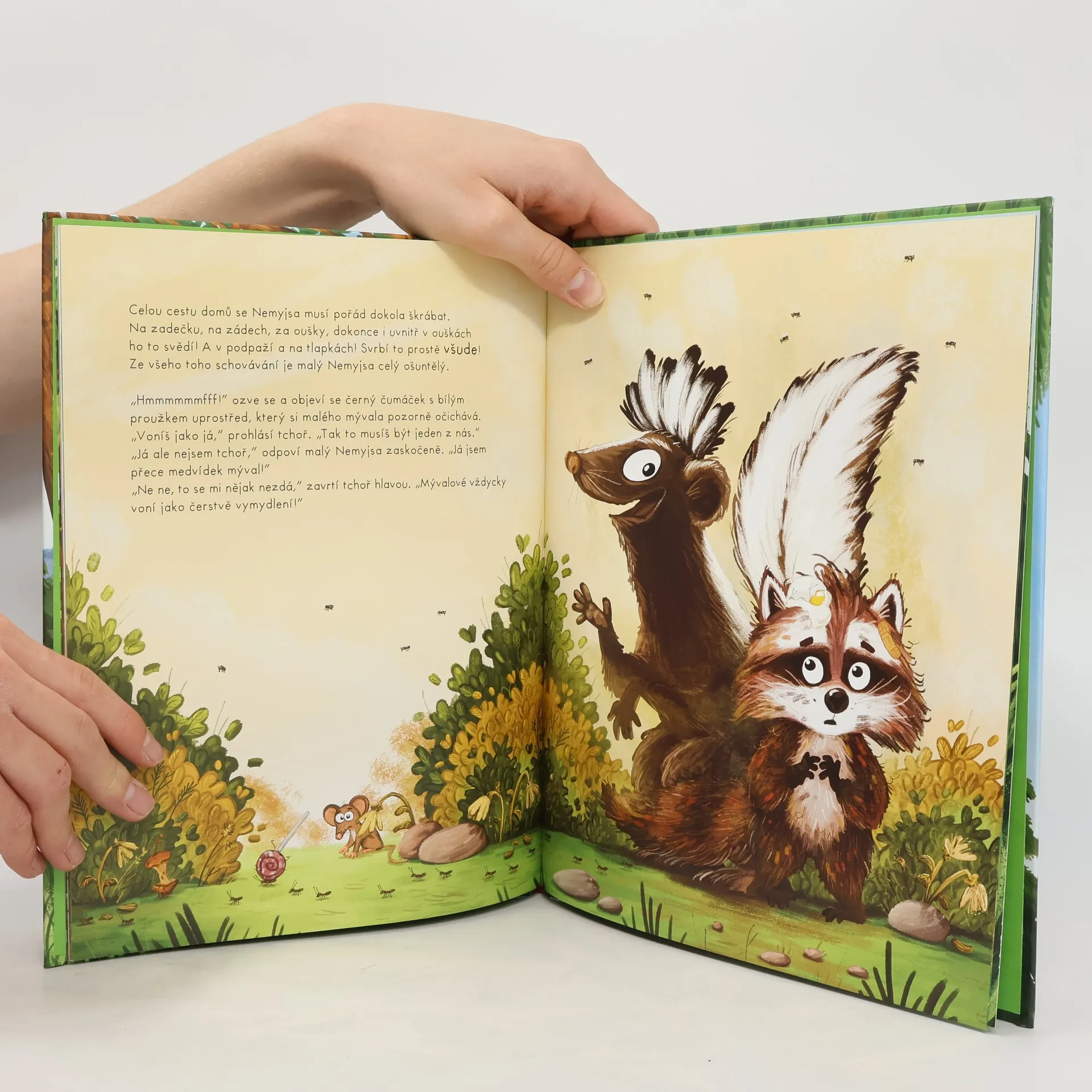 "Každý správný mýval se s chutí umývá každý každičký den!" napomíná maminka Mývalová svého synka. Jenže malý mýval Nemyjsa se mýt nechce. Vodě se vyhýbá jako čert kříži a raději se schovává v bahně mezi čuníky, skáče do hromady hnoje nebo se přehrabuje v popelnici za lesem. Po pár dnech proto zavání tak, že ho tchoři začnou považovat za jednoho z nich. Uvědomí si malý špindíra, že něco není v pořádku? Dá na slova své maminky a začne se konečně mýt?