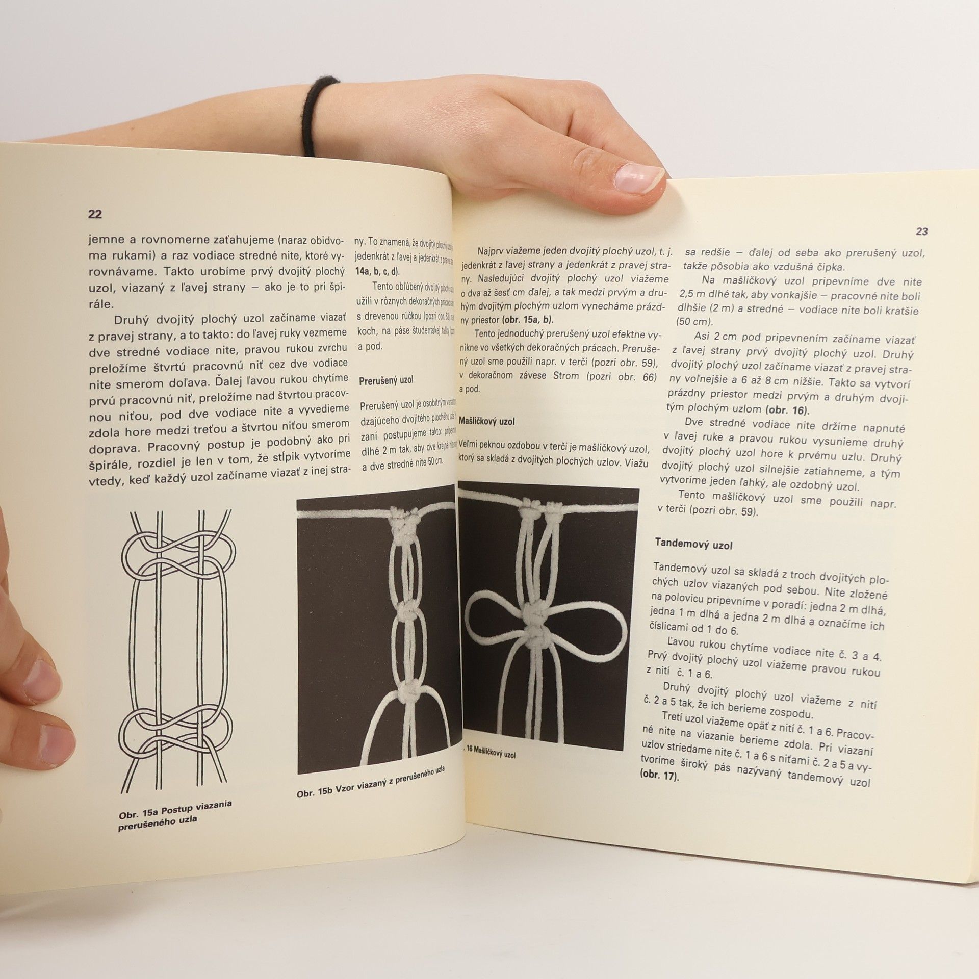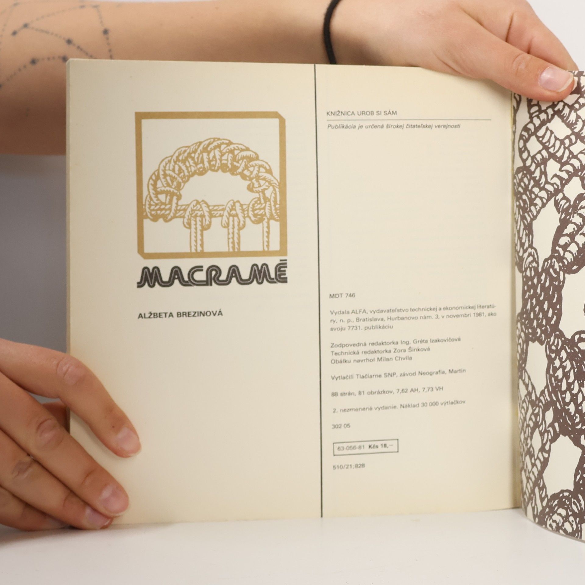 Praktická príručka obsahuje základy viazania uzlov - technikou macramé.Opisuje podrobne pracovný postup najpoužívanejších uzlov a ich aplikovanie na rozličné dekoratívne predmety, závesy aj modne doplnky.