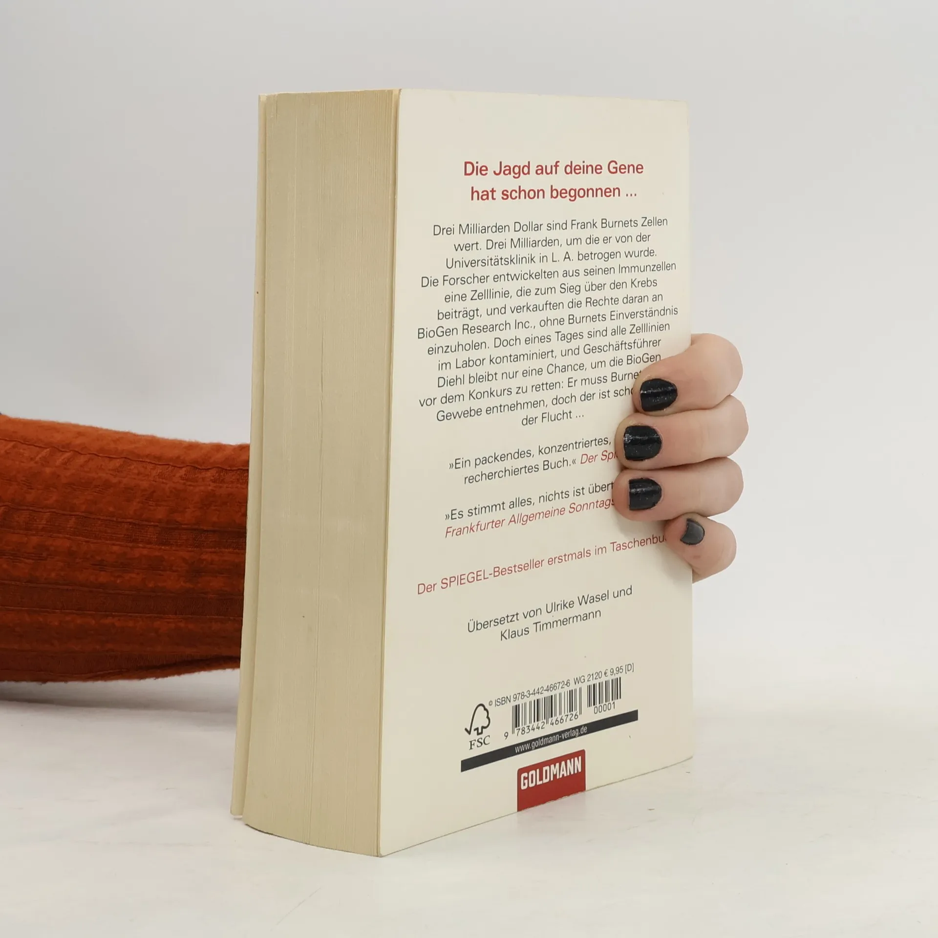 Ein rasanter Gen-Thriller, hochbrisant und brandaktuell Drei Milliarden Dollar sind Frank Burnets Zellen wert. Drei Milliarden, um die er von der Universitätsklinik in L. A. betrogen wurde. Die Forscher entwickelten aus seinen Immunzellen eine Zelllinie, die zum Sieg über den Krebs beiträgt, und verkauften die Rechte daran an BioGen Research Inc., ohne Burnets Einverständnis einzuholen. Doch eines Tages sind alle Zelllinien im Labor kontaminiert und Geschäftsführer Diehl bleibt nur eine Chance, um die BioGen vor dem Konkurs zu retten: Er muss Burnet erneut Gewebe entnehmen, doch der ist schon auf der Flucht .