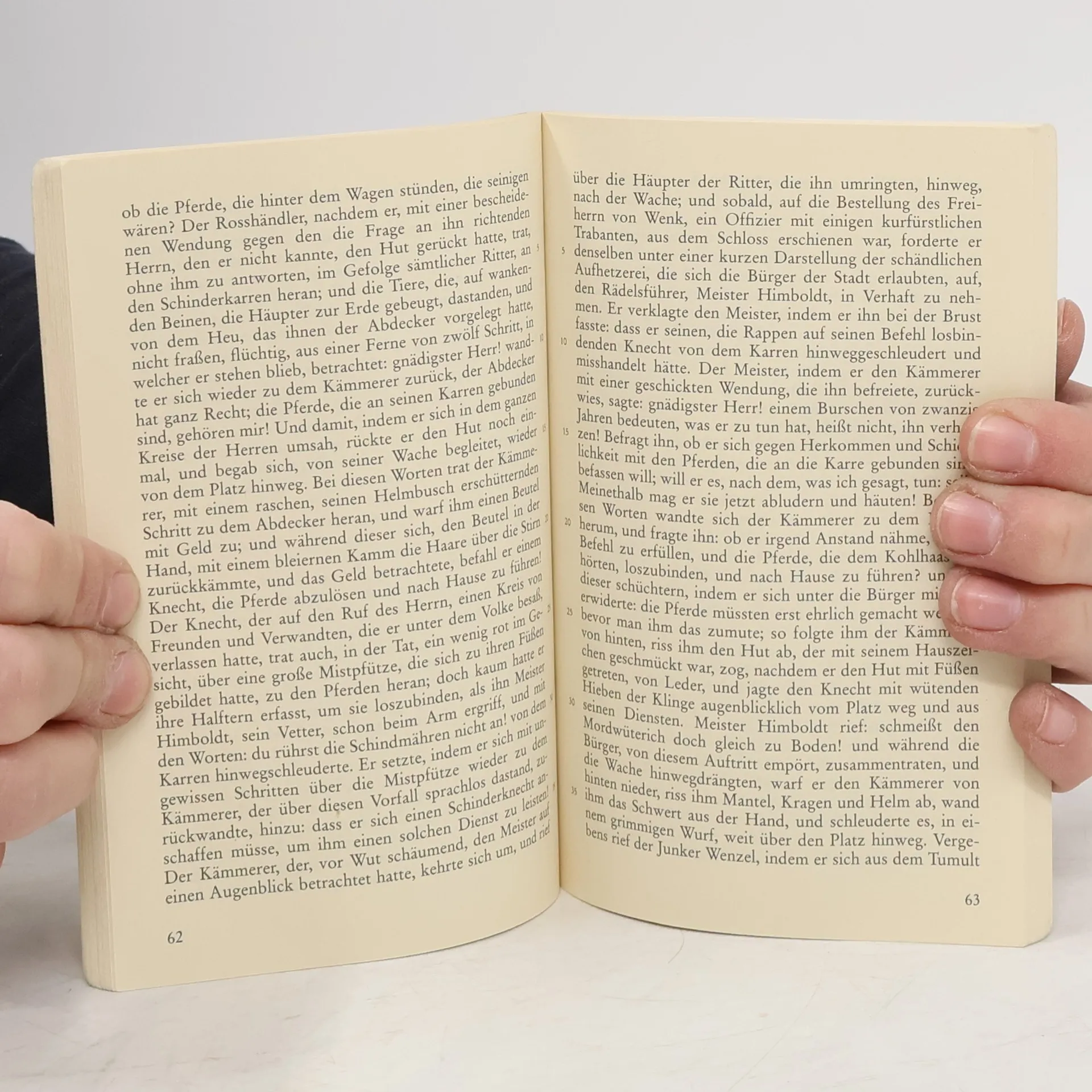 »Das Rechtgefühl machte ihn zum Räuber und Mörder«. Heinrich von Kleist erzählt das Schicksal des Rosshändlers Kohlhaas, der in einem blutigen Rachefeldzug Vergeltung für erlittene Ungerechtigkeit übt. Aber statt die Ordnung der Gesetze wieder herzustellen, stürzt er sich und seine Umwelt in heilloses Chaos. Basierend auf wahren Begebenheiten, erzählt Kleists berühmte Novelle von einer misslungenen Gratwanderung zwischen Gerechtigkeit und Selbstjustiz in ebenso mitreißender wie rigoroser Weise.