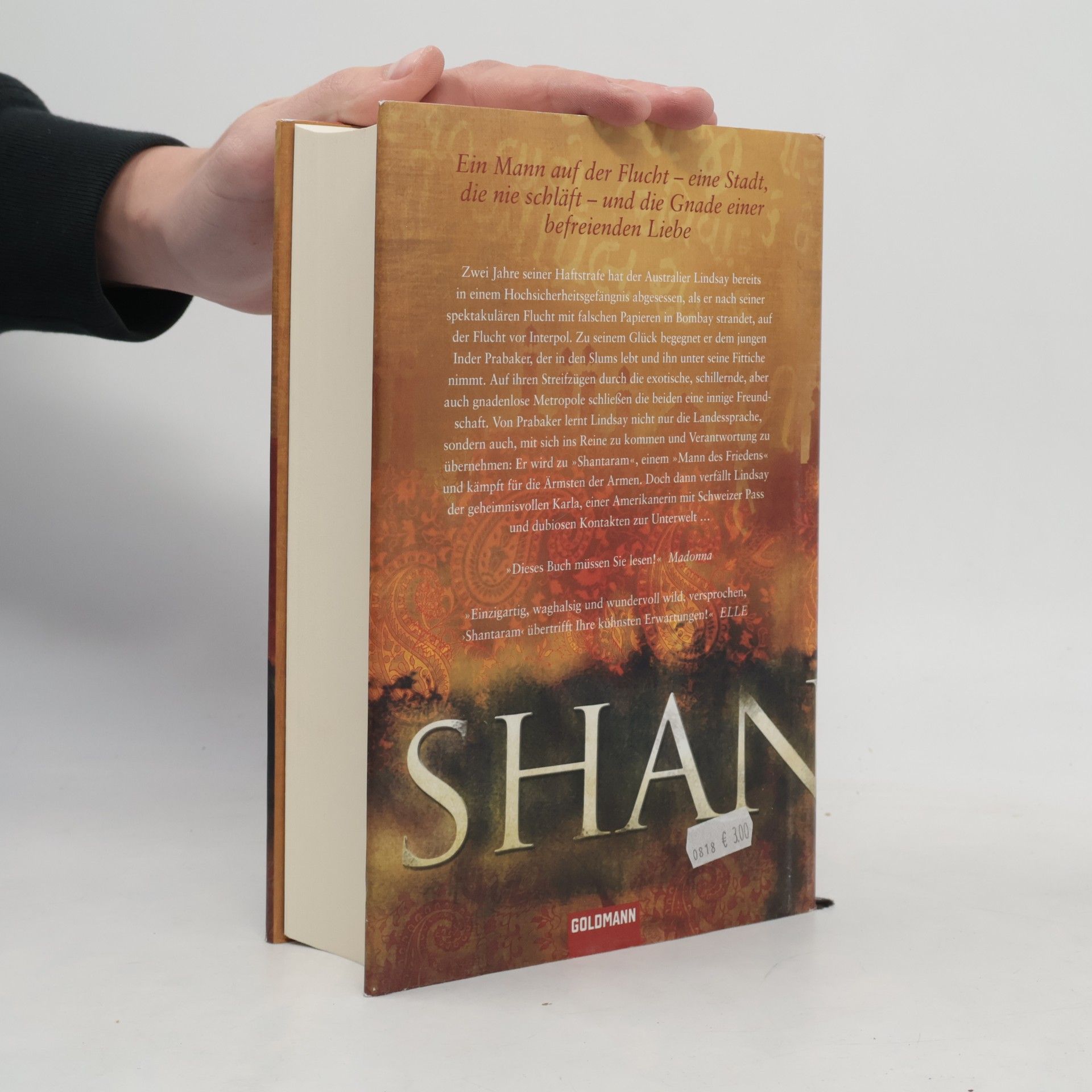 Ein Mann auf der Flucht – Eine Stadt, die nie schläft – Und die Gnade einer befreienden Liebe Shantaram erzählt in fiktionaler Form die Geschichte von Roberts’ eigenem Leben: Als der Australier Lindsay in Bombay strandet, hat er zwei Jahre seiner Gefängnisstrafe abgesessen und ist auf der Flucht vor Interpol. Zu seinem Glück begegnet er dem jungen Inder Prabaker, der ihn unter seine Fittiche nimmt. Auf ihren Streifzügen durch die exotische Metropole schließen die beiden eine innige Freundschaft. Von Prabaker lernt Lindsay nicht nur die Landessprache, sondern auch, mit sich ins Reine zu kommen: Er wird zu „Shantaram“, einem „Mann des Friedens“ und kämpft für die Ärmsten der Armen. Doch dann verfällt Lindsay der geheimnisvollen Karla, einer Deutsch-Amerikanerin mit dubiosen Kontakten zur Unterwelt … Ein Roman, so leidenschaftlich wie der Herzschlag Indiens, voller Wahrheit und Poesie.