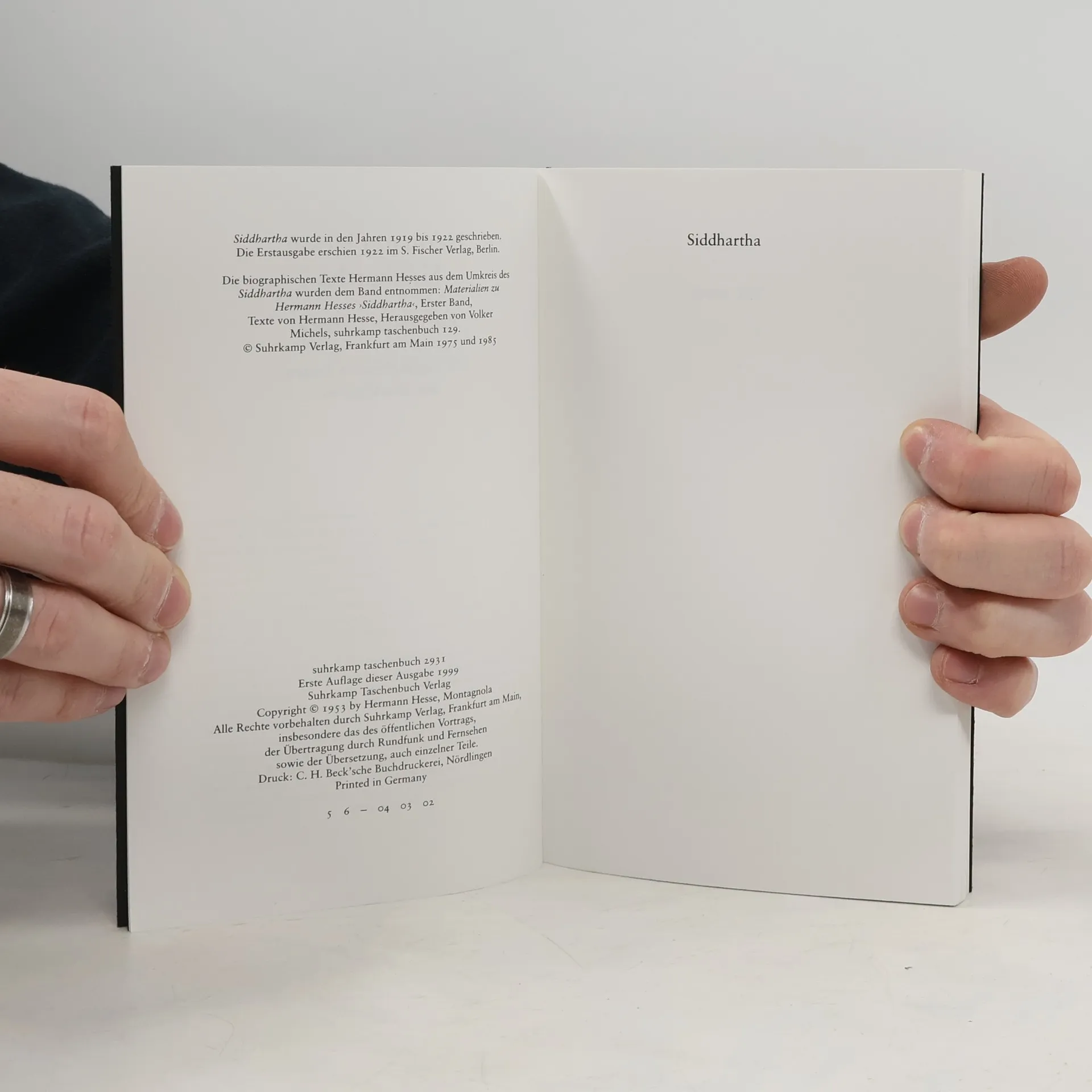 Enth. auch (S. 139-190): Biographische Texte Hermann Hesses aus dem Umkreis des "Siddhartha."