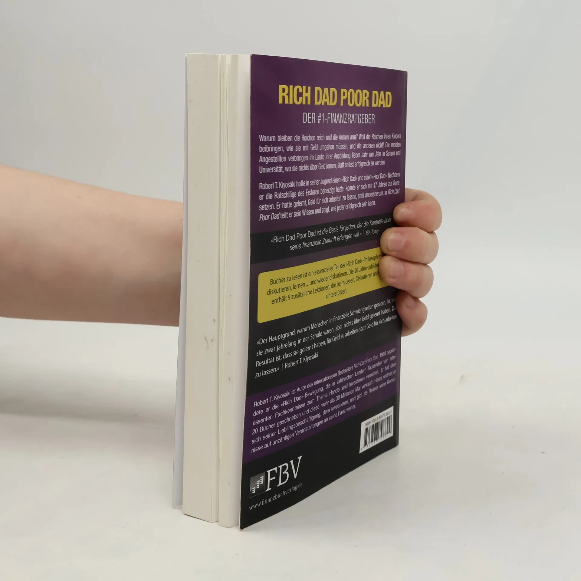 Warum bleiben die Reichen reich und die Armen arm? Weil die Reichen ihren Kindern beibringen, wie sie mit Geld umgehen müssen, und die anderen nicht! Die meisten Angestellten verbringen im Laufe ihrer Ausbildung lieber Jahr um Jahr in Schule und Universität, wo sie nichts über Geld lernen, statt selbst erfolgreich zu werden. Robert T. Kiyosaki hatte in seiner Jugend einen »Rich Dad« und einen »Poor Dad«. Nachdem er die Ratschläge des Ersteren beherzigt hatte, konnte er sich mit 47 Jahren zur Ruhe setzen. Er hatte gelernt, Geld für sich arbeiten zu lassen, statt andersherum. In Rich Dad Poor Dad teilt er sein Wissen und zeigt, wie jeder erfolgreich sein kann. © Autorenfoto: Rich Dad Company