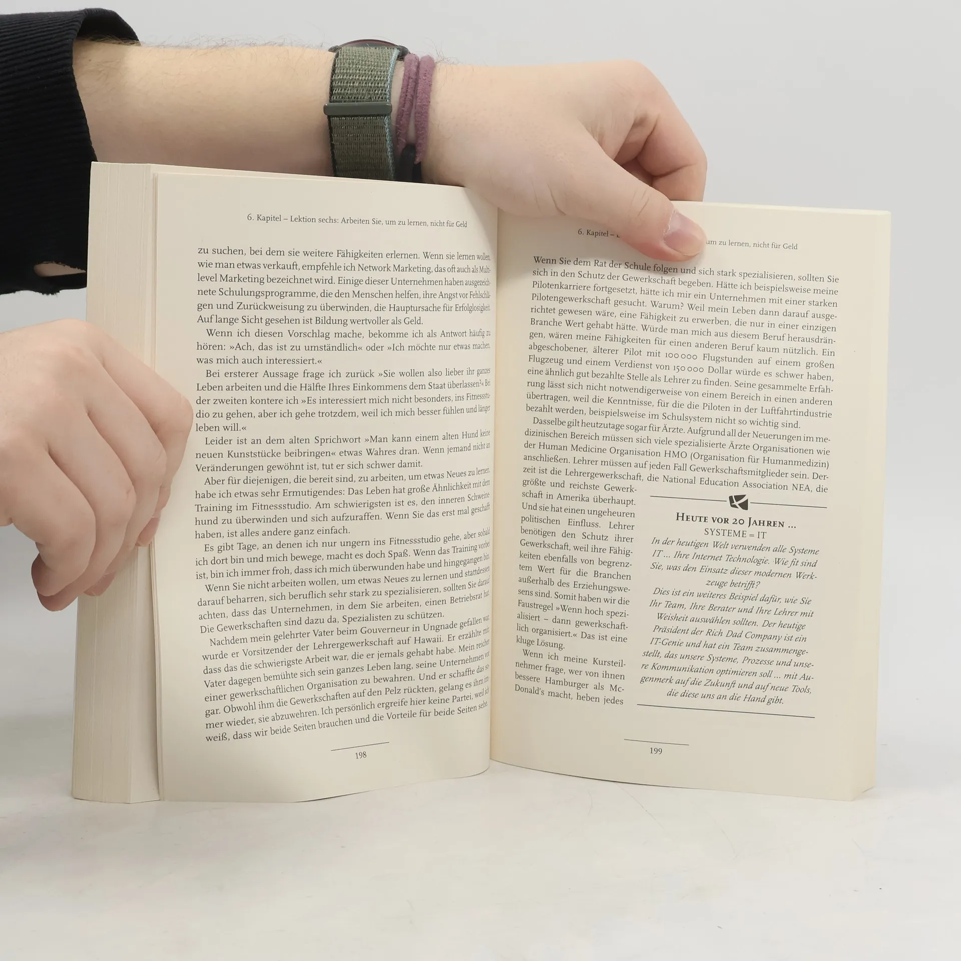Warum bleiben die Reichen reich und die Armen arm? Weil die Reichen ihren Kindern beibringen, wie sie mit Geld umgehen müssen, und die anderen nicht! Die meisten Angestellten verbringen im Laufe ihrer Ausbildung lieber Jahr um Jahr in Schule und Universität, wo sie nichts über Geld lernen, statt selbst erfolgreich zu werden. Robert T. Kiyosaki hatte in seiner Jugend einen »Rich Dad« und einen »Poor Dad«. Nachdem er die Ratschläge des Ersteren beherzigt hatte, konnte er sich mit 47 Jahren zur Ruhe setzen. Er hatte gelernt, Geld für sich arbeiten zu lassen, statt andersherum. In Rich Dad Poor Dad teilt er sein Wissen und zeigt, wie jeder erfolgreich sein kann. © Autorenfoto: Rich Dad Company