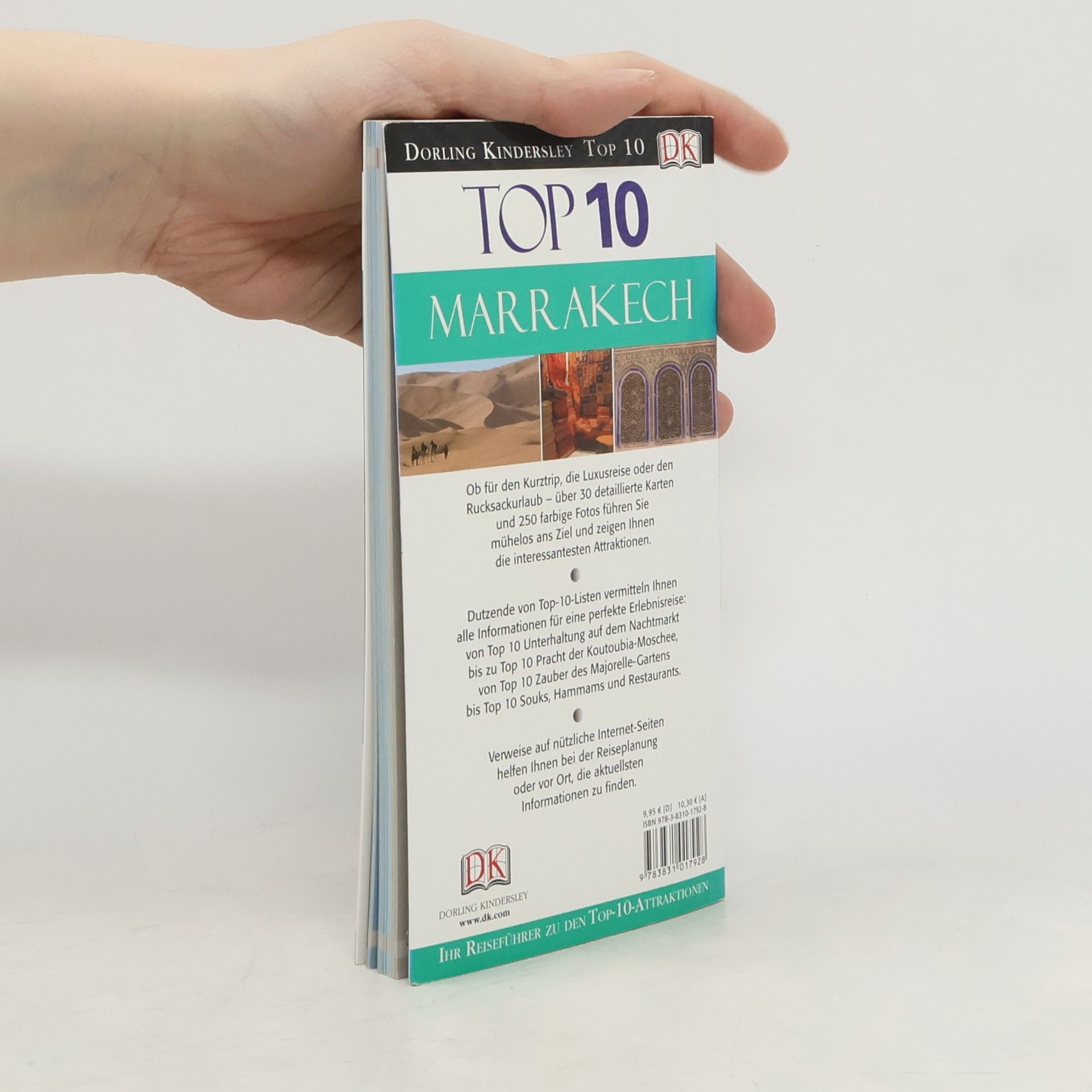 Ob für den Kurztrip, die Luxusreise oder den Rucksackurlaub – über 30 detaillierte Karten und rund 250 farbige Fotos führen Sie mühelos ans Ziel und zeigen Ihnen die interessantesten Attraktionen. Dutzende von Top-10-Listen vermitteln Ihnen alle Informationen für eine perfekte Erlebnisreise: von Top 10 Unterhaltung auf dem Nachtmarkt über Top 10 Pracht der Koutoubia-Moschee bis Top 10 Zauber des Majorelle-Gartens. Mit Extrakarte zum Herausnehmen.