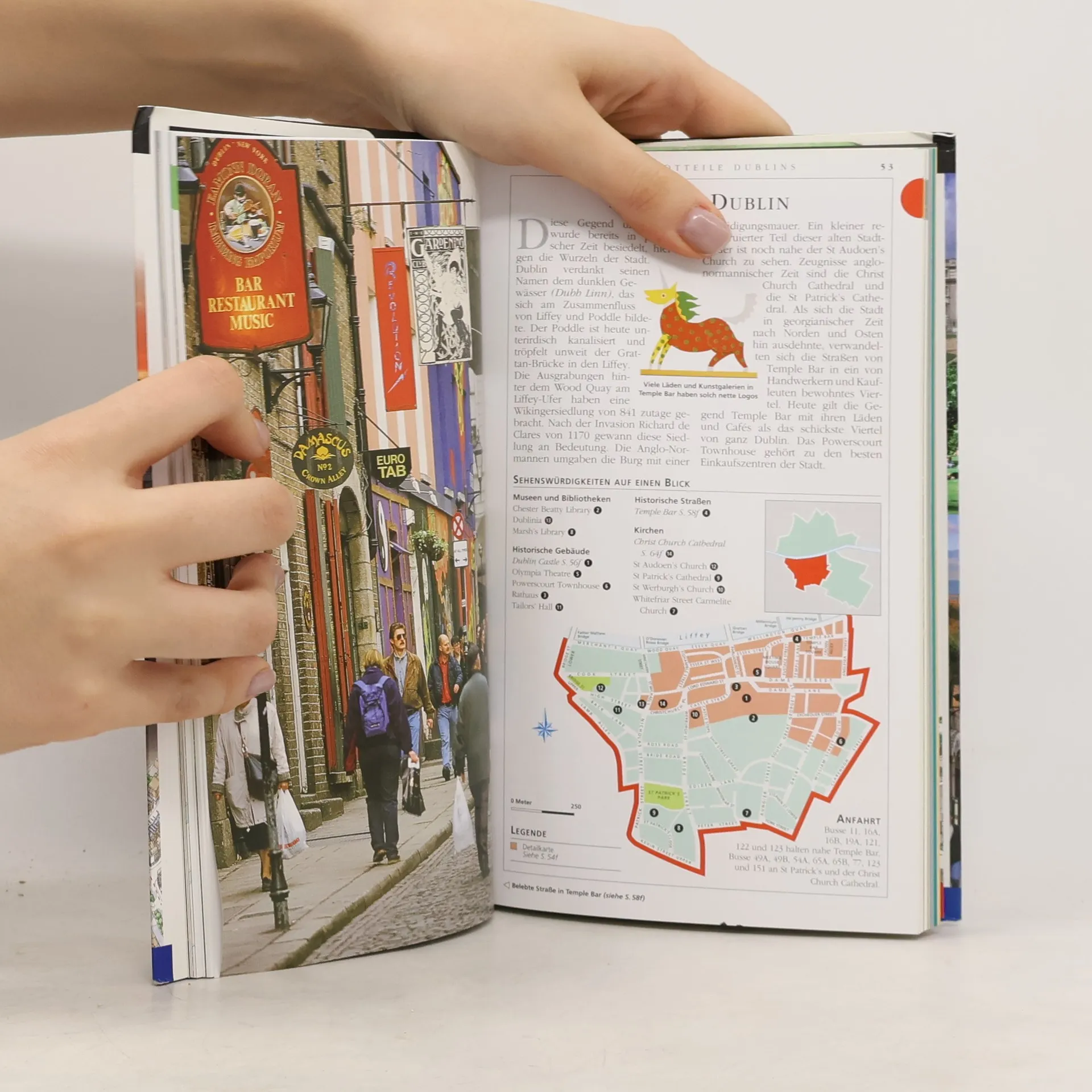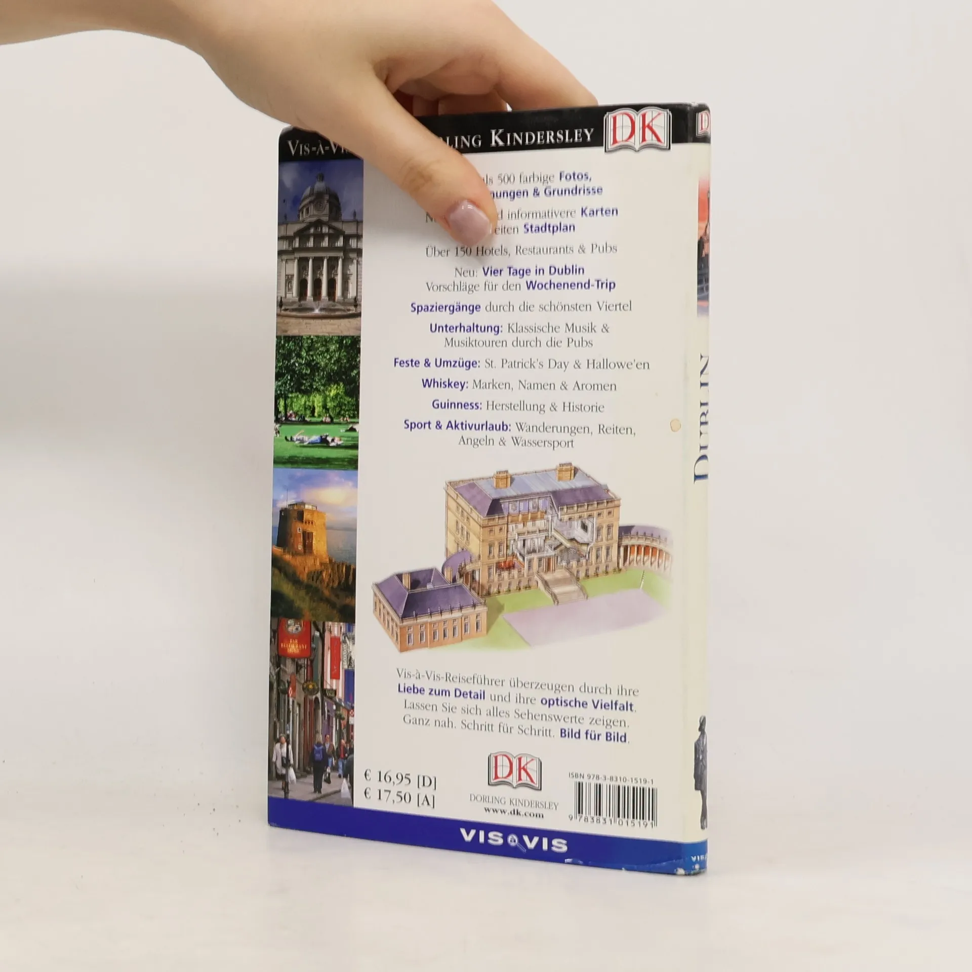 Mit seiner bunten Altstadt, der malerischen Landschaft von Dublin Bay und den nahegelegenen Wicklow Mountains ist Dublin für Städtereisende wie auch für Naturfreunde ein ideales Ziel. Auch die Kulturszene ist einzigartig – eine spannende Mischung aus gälischer Tradition, Musik, Tanz, Literatur und Theater. Der Vis-à-Vis-Reiseführer Dublin nimmt Sie mit auf Entdeckungsreise und zeigt Ihnen die gemütlichsten Pubs, die eindrucksvollsten Sehenswürdigkeiten und die schönsten Routen für Spaziergänge in Dublin. Mehr als 500 farbige Fotos, 3-D-Zeichnungen und Grundrisse sowie das ausführliche Kartenmaterial erleichtern die Orientierung. Dazu erfahren Sie alles Wissenswerte über Festivals, Shopping und Unterhaltung. Den besten Ausflugszielen in der Umgebung ist ein eigenes Kapitel gewidmet. Mit Extra-Tipps für die Kurzreise sowie für Sport- & Aktivurlaub.