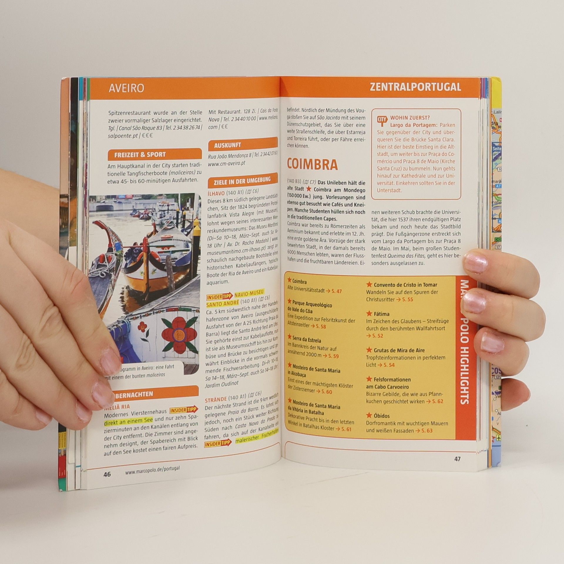 Portugal begeistert, elektrisiert, versetzt in Erstaunen. Auf einem Viertel der Fläche Deutschlands wechseln sich atemberaubende Strände und Klippen mit Gebirgen ab, pulsierende Städte mit abgeschiedenen Dörfern, Prachtpaläste mit Zinnenbesetzten Bilderbuchburgen. In den fruchtbaren Weiten fährt der Wind durch Korkeichen und Orangenbäume, das legendäre Kap São Vincente wird von heftigen Stürmen gepeitscht. Klimatisch ist vor allem die südliche Urlaubsregion Algarve mit ihren rund 300 Sonnentagen im Jahr begünstigt; Lissabon lohnt einen Citytrip zu jeder Jahreszeit. Was man zu jeder Zeit und überall findet: freundliche, offenherzige Menschen.