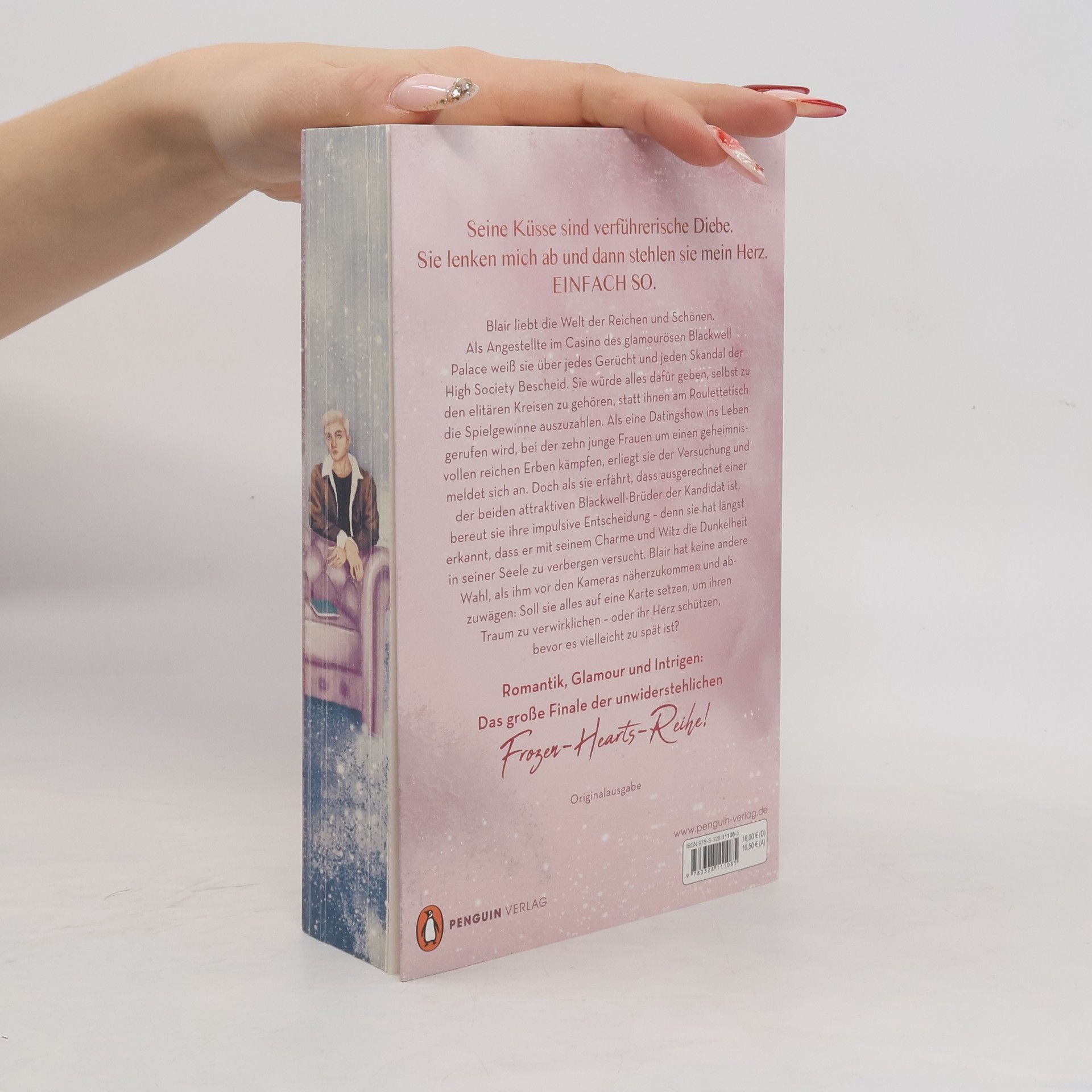 Wenn es draußen kalt ist, geht es im Blackwell Palace umso heißer zu: Das atemberaubende Finale der Frozen-Hearts-Reihe Mit teilweise besonderer Gestaltung des Schriftbilds. »Wenn ihr nach einer faszinierenden Story und einem unwiderstehlichen Setting sucht, müsst ihr unbedingt ›Blackwell Palace‹ lesen!« ANNA TODD Lieferbarkeit in zwei Versionen (mit und ohne Farbschnitt). Es wird je nach Verfügbarkeit geliefert. Blair liebt die Welt der Reichen und Schönen. Als Angestellte im Casino des glamourösen Blackwell Palace weiß sie über jedes Gerücht und jeden Skandal der High Society Bescheid. Sie würde alles dafür geben, selbst zu den elitären Kreisen zu gehören, statt ihnen am Roulettetisch die Spielgewinne auszuzahlen. Als eine Datingshow ins Leben gerufen wird, bei der zehn junge Frauen um einen geheimnisvollen reichen Erben kämpfen, erliegt sie der Versuchung und meldet sich an. Doch als sie erfährt, dass ausgerechnet einer der beiden attraktiven Blackwell-Brüder der Kandidat ist, bereut sie ihre impulsive Entscheidung – denn sie hat längst erkannt, dass er mit seinem Charme und Witz die Dunkelheit in seiner Seele zu verbergen versucht. Blair hat keine andere Wahl, als ihm vor den Kameras näherzukommen und abzuwägen: Soll sie alles auf eine Karte setzen, um ihren Traum zu verwirklichen – oder ihr Herz schützen, bevor es vielleicht zu spät ist? Die Erstauflage ist mit einem hochwertigen farbigen Buchschnitt ausgestattet – nur solange der Vorrat reicht. Ein Love Triangle voller Romantik, Spice, Glamour und Intrigen im verschneiten St. Moritz – die Frozen-Hearts-Reihe im Überblick: 1. Blackwell Palace. Risking it all 2. Blackwell Palace. Wanting it all 3. Blackwell Palace. Feeling it all Und danach? Lust auf noch mehr Sehnsucht, Prickeln und zauberhafte Winteratmosphäre von Bestsellerautorin Ayla Dade? Dann wird es Zeit für die Winter-Dreams-Reihe: 1. Like Snow We Fall 2. Like Fire We Burn 3. Like Ice We Break 4. Like Shadows We Hide