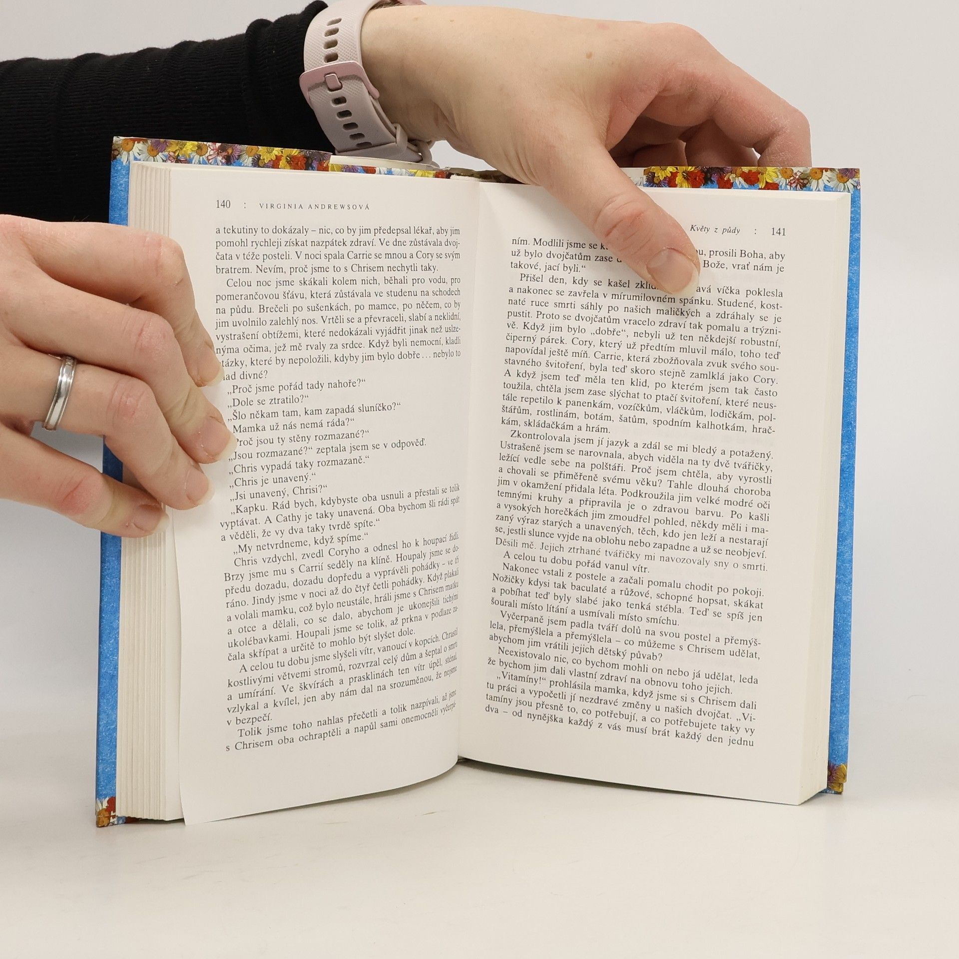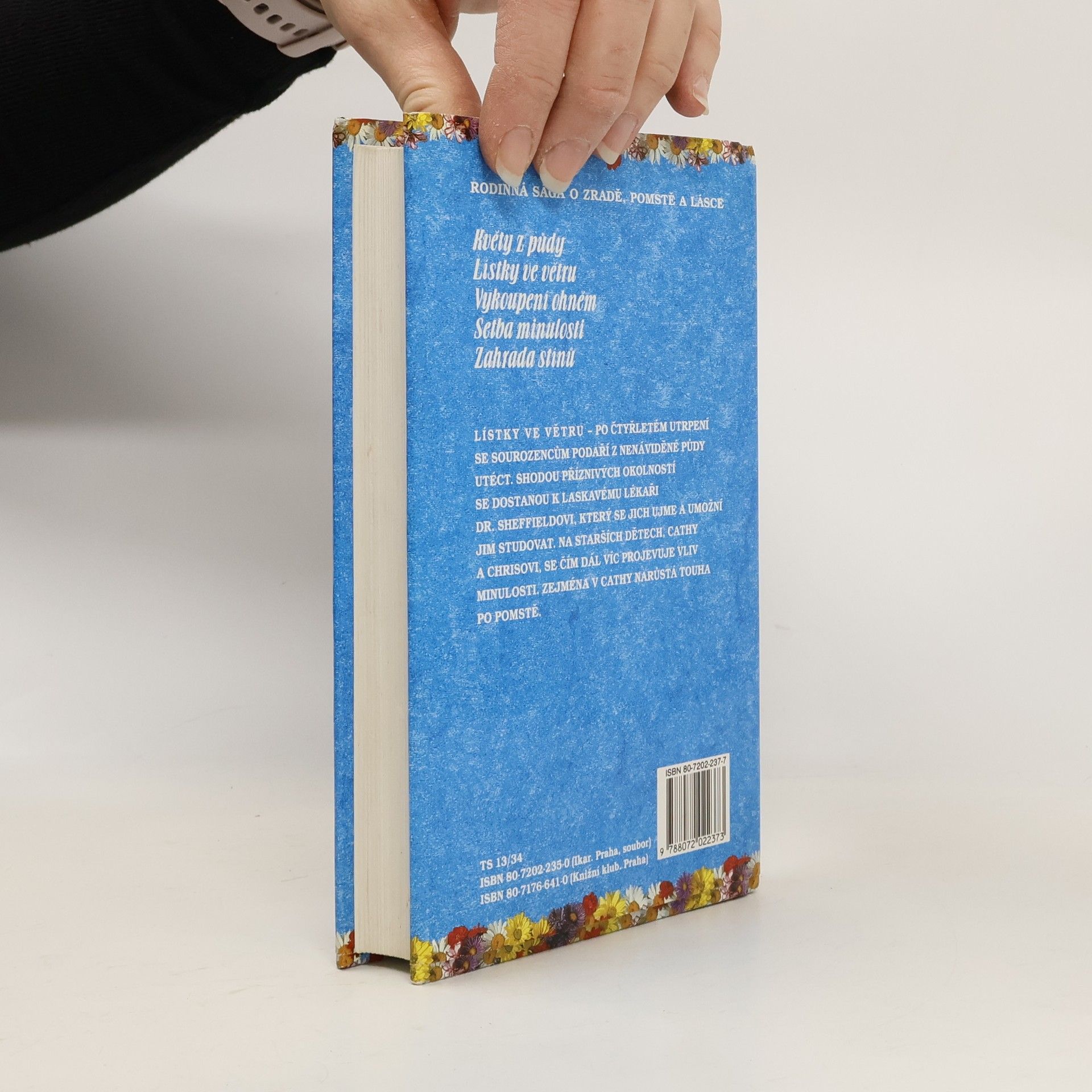 Pentalogie: Květy z půdy, Lístky ve větru, Vykoupení ohněm, Setba minulosti, Zahrada stínů. Po smrti otce zůstávají sourozenci Christopher, Cathy a dvojčata Cory a Carrie se svou matkou sami. Ta ovšem nemá peníze, a tak se rozhodne pro riskantní návrat k velmi bohatým rodičům, kteří ji ale vydědili. Děti zavře do podkrovního pokoje a s pomocí své zlé matky jim nosí potřebné věci k přežití. Dětem vlastně nic neschází, kromě čerstvého vzduchu, živých květin a pocitu volnosti. Na půdě, kam je přístup jen z onoho pokoje si vybudují papírovou "zahradu" kde si můžou pětiletá dvojčata hrát. Postihne je ale nejedno úskalí, největším problémem začíná být dospívání Christophera a Cathy, kteří se do sebe bezhlavě zamilují... 2. vydání