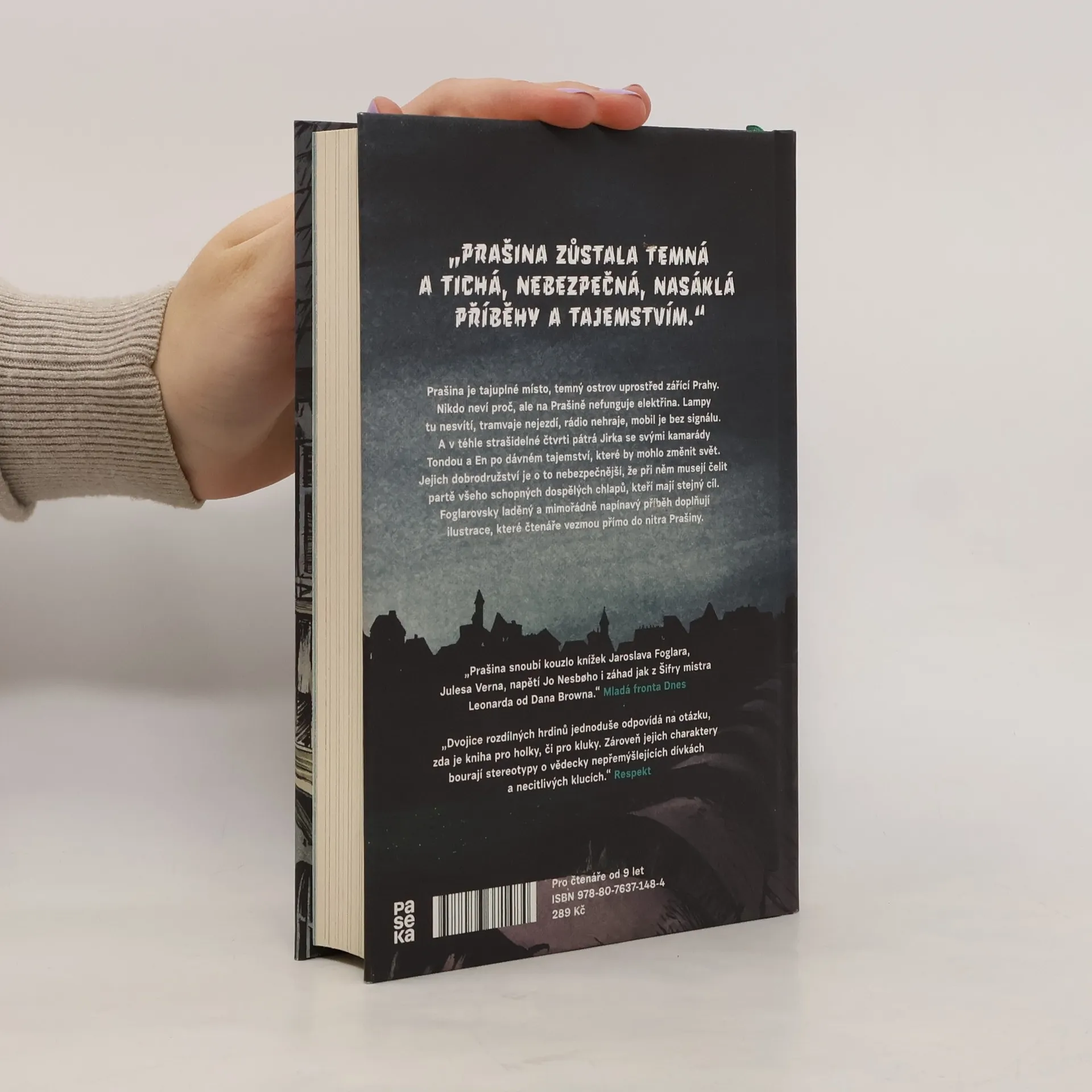 Prašina je tajuplné místo, temný ostrov uprostřed zářící Prahy. Nikdo neví proč, ale na Prašině nefunguje elektřina. Lampy tu nesvítí, tramvaje nejezdí, rádio nehraje, mobil je bez signálu. A v téhle strašidelné čtvrti pátrá Jirka se svými kamarády Tondou a En po dávném tajemství, které by mohlo změnit svět. Jejich dobrodružství je o to nebezpečnější, že při něm musejí čelit partě všeho schopných dospělých chlapů, kteří mají stejný cíl. Foglarovsky laděný a mimořádně napínavý příběh doplňují ilustrace, které čtenáře vezmou přímo do nitra Prašiny.