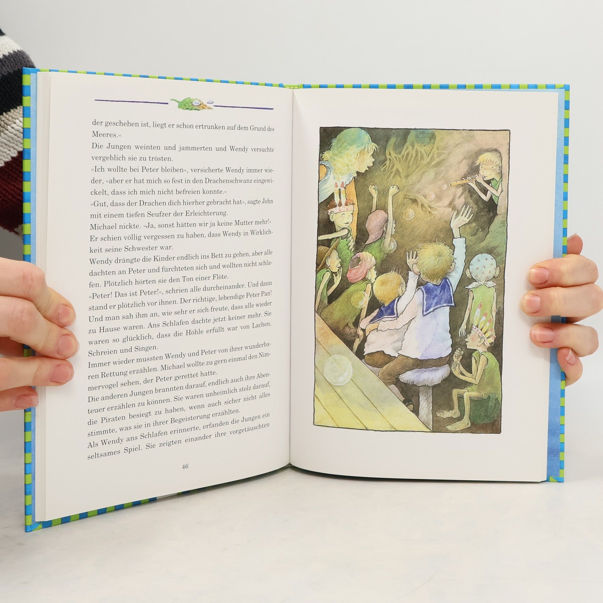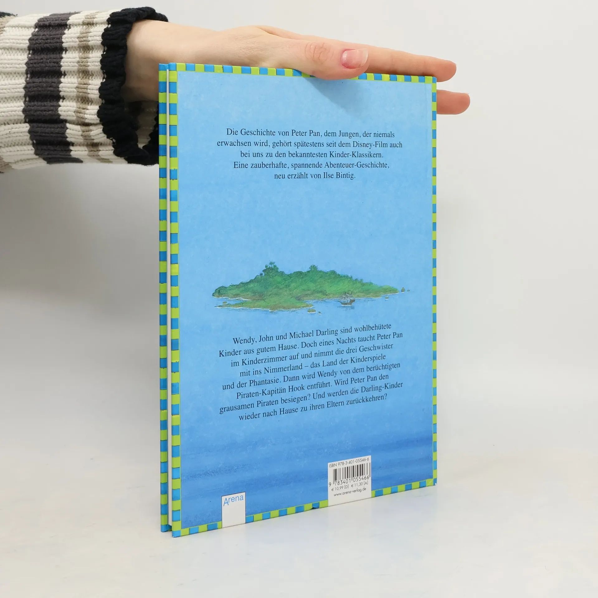 Die Geschichte von Peter Pan, dem Jungen, der niemals erwachsen wird, gehört spätestems seit dem Disney-Film auch bei uns zu den bekanntesten Kinder-Klassikern. Eine zauberhafte, spannende Abenteuer-Geschichte, neu erzählt von Ilse Bintig. Wendy, John und Micheal Darling sind wohlbehütete Kinder aus gutem Hause. Doch eines Nachts taucht Peter Pan im Kinderzimmer auf und nimmt die drei Geschwister mit ins Nimmerland - das Land der Kinderspiele und der Phantasie. Dann wird Wendy von dem berüchtigten Piraten-Kapitän Hook entführt. Wird Peter Pan den grausamen Piraten besiegen? Und werden die Darling-Kinder wieder nach Hause zu ihren Eltern zurückkehren?