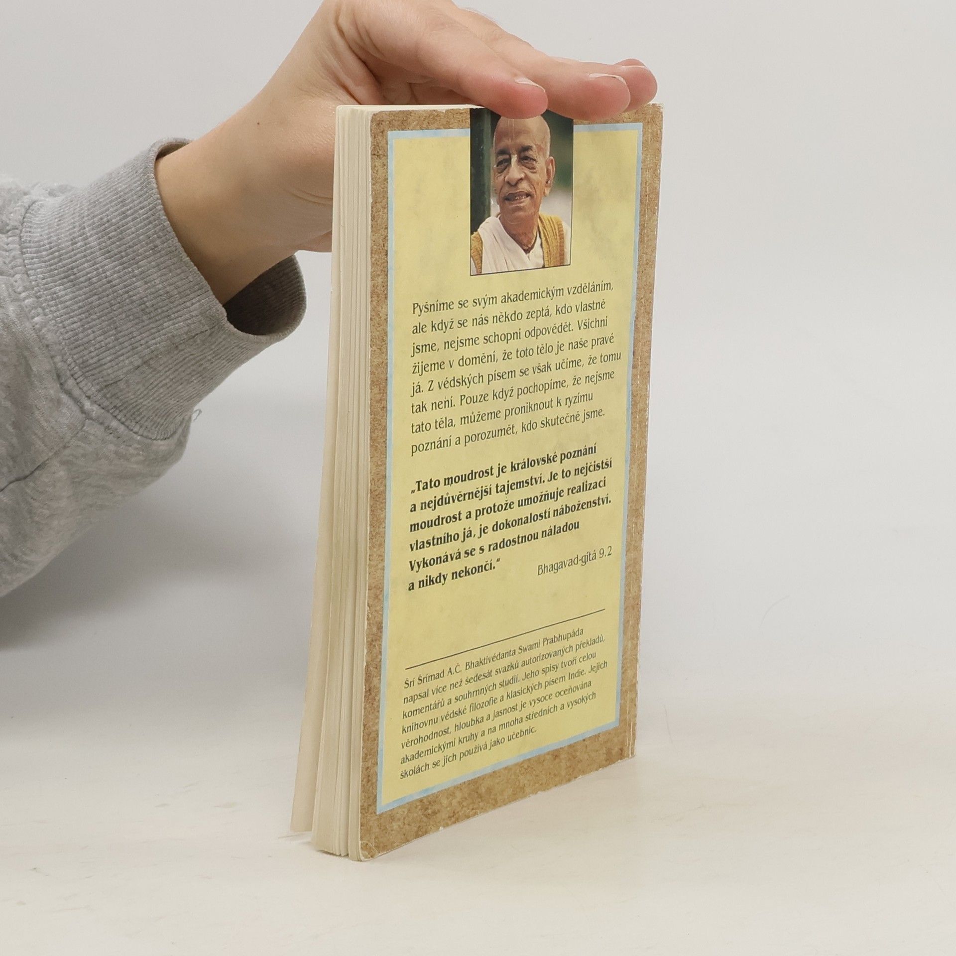Pyšníme se svým akademickým vzděláním, ale když se nás někdo zeptá, kdo vlastně jsme, nejsme schopni odpovědět. Všichni žijeme v domnění, že toto tělo je naše pravé já. Z védských písem se však učíme, že tomu tak není. Pouze když pochopíme, že nejsme tato těla, můžeme proniknout k ryzímu poznání a porozumět, kdo jsme.