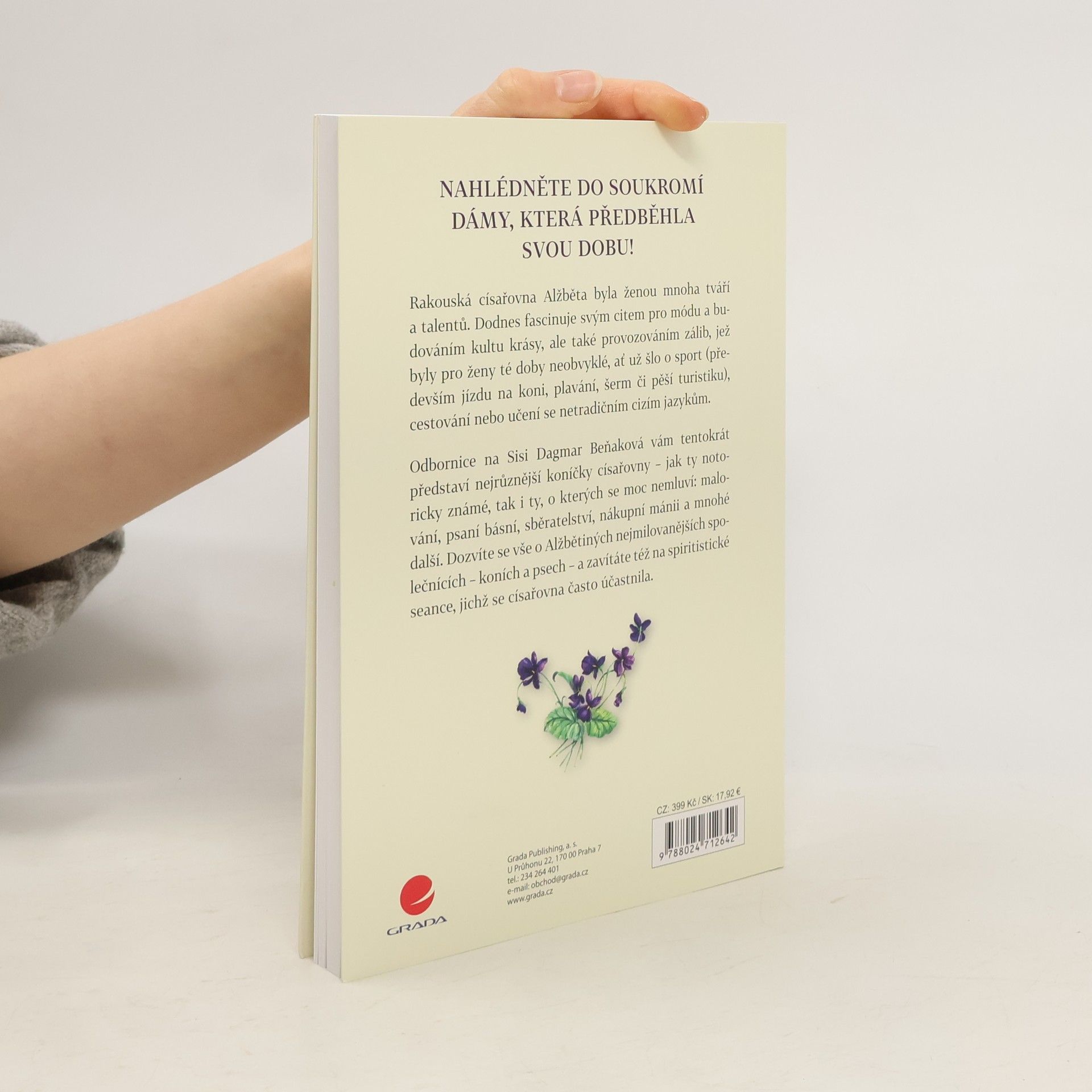 NAHLÉDNĚTE DO SOUKROMÍ DÁMY, KTERÁ PŘEDBĚHLA SVOU DOBU! Rakouská císařovna Alžběta byla ženou mnoha tváří a talentů. Dodnes fascinuje svým citem pro módu a budováním kultu krásy, ale také provozováním zálib, jež byly pro ženy té doby neobvyklé, ať už šlo o sport (především jízdu na koni, plavání, šerm či pěší turistiku), cestování nebo učení se netradičním cizím jazykům. Odbornice na Sisi Dagmar Beňaková vám tentokrát představí nejrůznější koníčky císařovny – jak ty notoricky známé, tak i ty, o kterých se moc nemluví: malování, psaní básní, sběratelství, nákupní mánii a mnohé další. Dozvíte se vše o Alžbětiných nejmilovanějších společnících – koních a psech – a zavítáte též na spiritistické seance, jichž se císařovna často účastnila