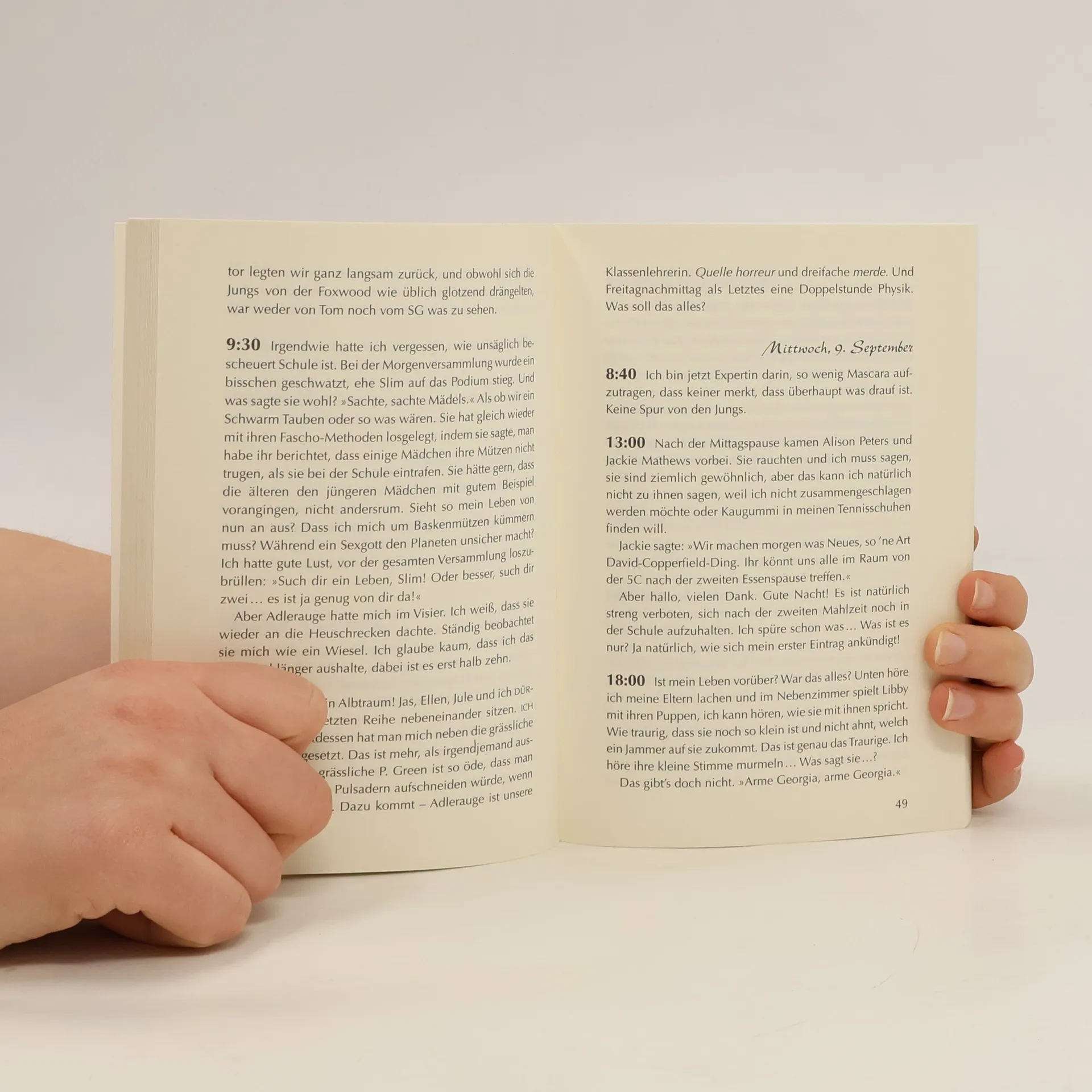 Die Sorgen und Nöte der 14-jährigen Georgia Nicolson. Die 14-jährige Georgia Nicolson schreibt Tagebuch. Ein Jahr lang notiert sie alles, was sie denkt und tut. Schonungslos offen und mit einer gehörigen Portion unfreiwilligen Humors schildert sie die Ereignisse eines Jahres, in dem sich nicht nur für sie, sondern für die ganze Familie viel verändert. Die Topthemen: Wann sehen meine Eltern endlich ein, dass ich kein Baby mehr bin? Wie wirke ich reifer und erwachsen (und habe dabei trotzdem noch Spaß)? Ärger in der Schule. Was macht man beim Küssen mit den Händen? Und was mit der Zunge? Mich küsst eh keiner! Wie kann ich Mr. Wunderbar davon überzeugen, dass ich die Richtige für ihn bin? Hilfe, ich bin hässlich! Verkracht mit der besten Freundin – und wieder versöhnt!