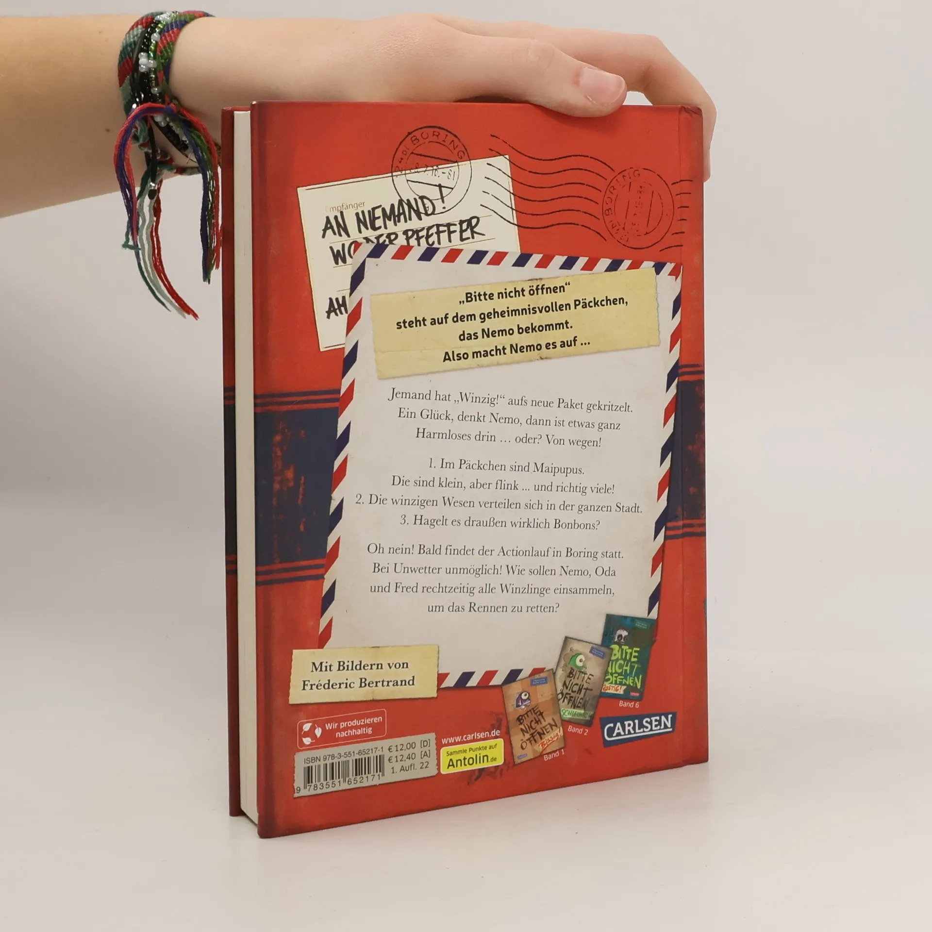 Was ist winzig, wieselflink und lässt Bonbons regnen? Nemos neue Monsterpost! Nachdem die Schwerkraft in Boring wiederhergestellt ist, trifft ein neues Päckchen bei Nemo und seinen Freunden ein. Selbst Fred glaubt, dass nichts Gefährliches darin ist, denn „Winzig!“ steht dick auf dem Deckel. Doch nach dem Öffnen des Pakets schießen viele kleine Wesen heraus. Die Maipupus sind los und verteilen sich rasend schnell in der Stadt! Wie sollen Nemo, Oda und Fred alle hundert Stück wieder einfangen? Immer wieder erhalten die Freunde seltsame Pakete, die sie eigentlich nicht öffnen dürften, aber sie tun es trotzdem – mit katastrophalen Folgen! Aus jedem Paket springt ein Wesen, das nach Hause will, lebendig, riesengroß und selten hilfreich. Die Buchreihe bietet geheimnisvolle Pakete, urkomische Figuren und spannende Abenteuer für Fans von mysteriösen Detektivgeschichten und lustiger Fantasy. Ob Yeti, Drache oder Vampir – jeder Band birgt ein anderes Monster. Mit großer Schrift und vielen Bildern ist es ideal für Leseanfänger*innen und Zweitklässler*innen ab 8 Jahren. Ein verlorenes Wesen, das nach Hause will, drei mutige Freunde und viele Überraschungen – perfekt für abenteuerlustige Mädchen und Jungen zum Vor- oder Selberlesen.